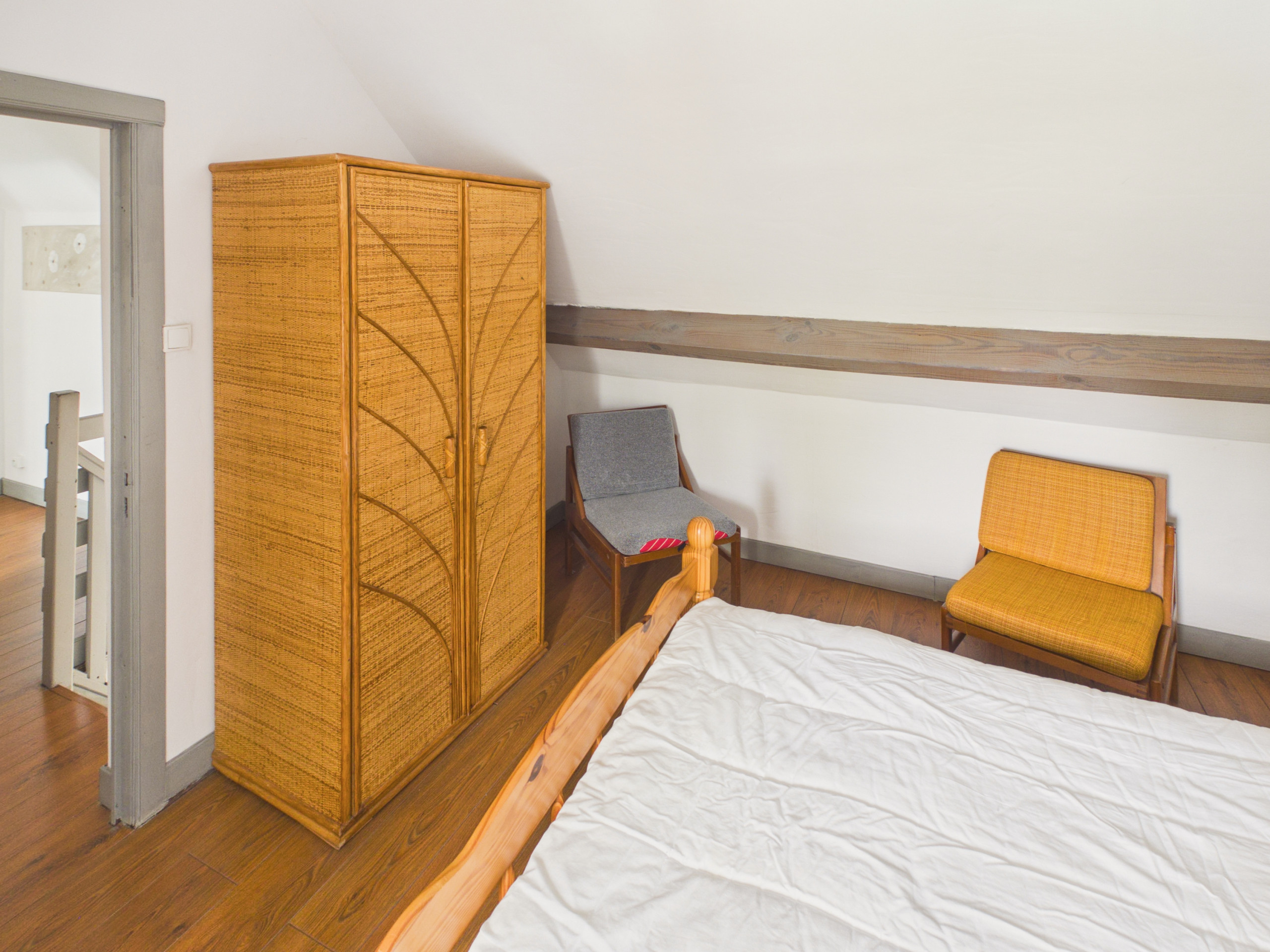 - Una habitación con una cama doble (140x190 cm) y un armario de almacenamiento.