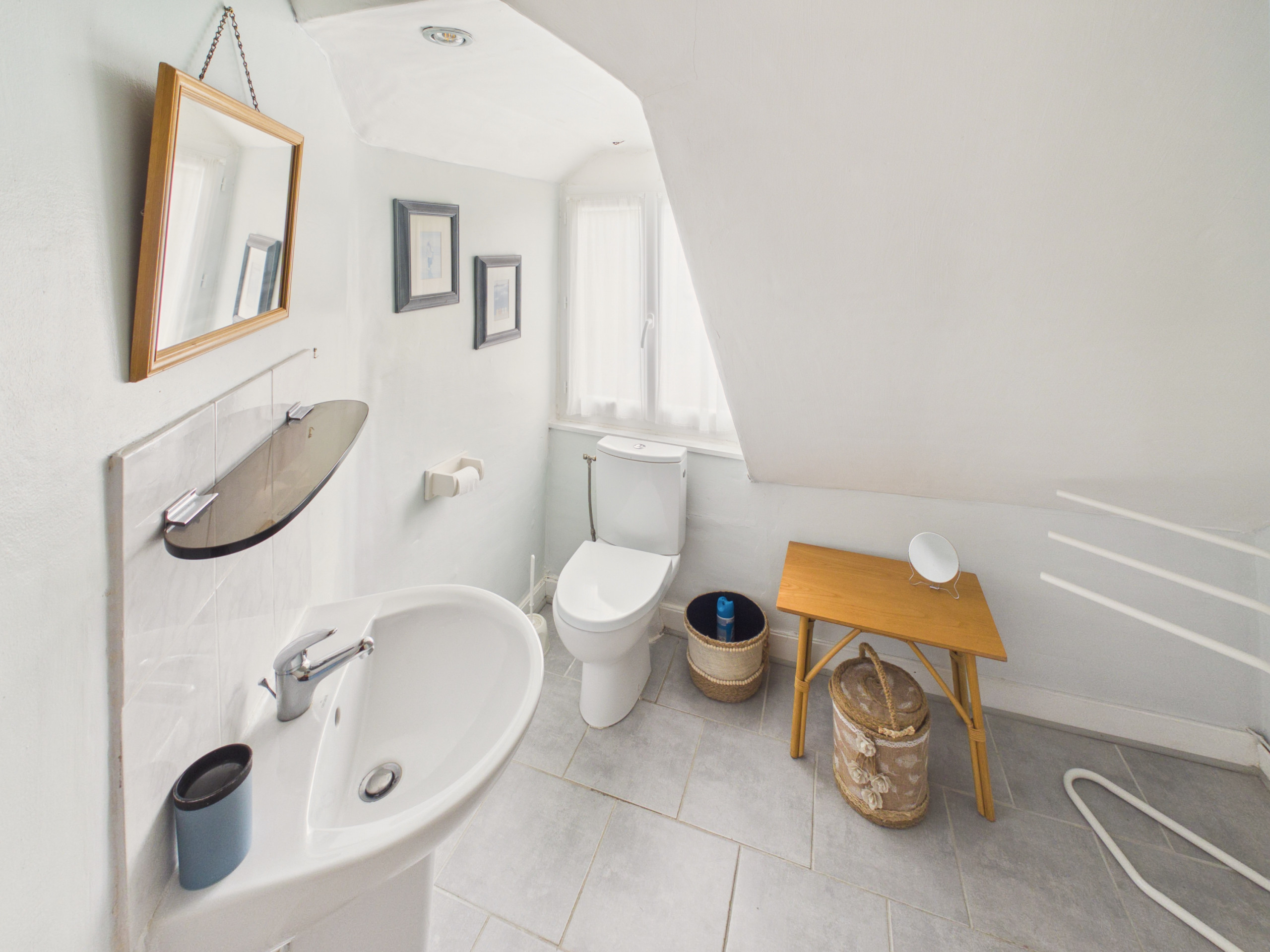 El baño en el piso superior dispone de una ducha y un inodoro.