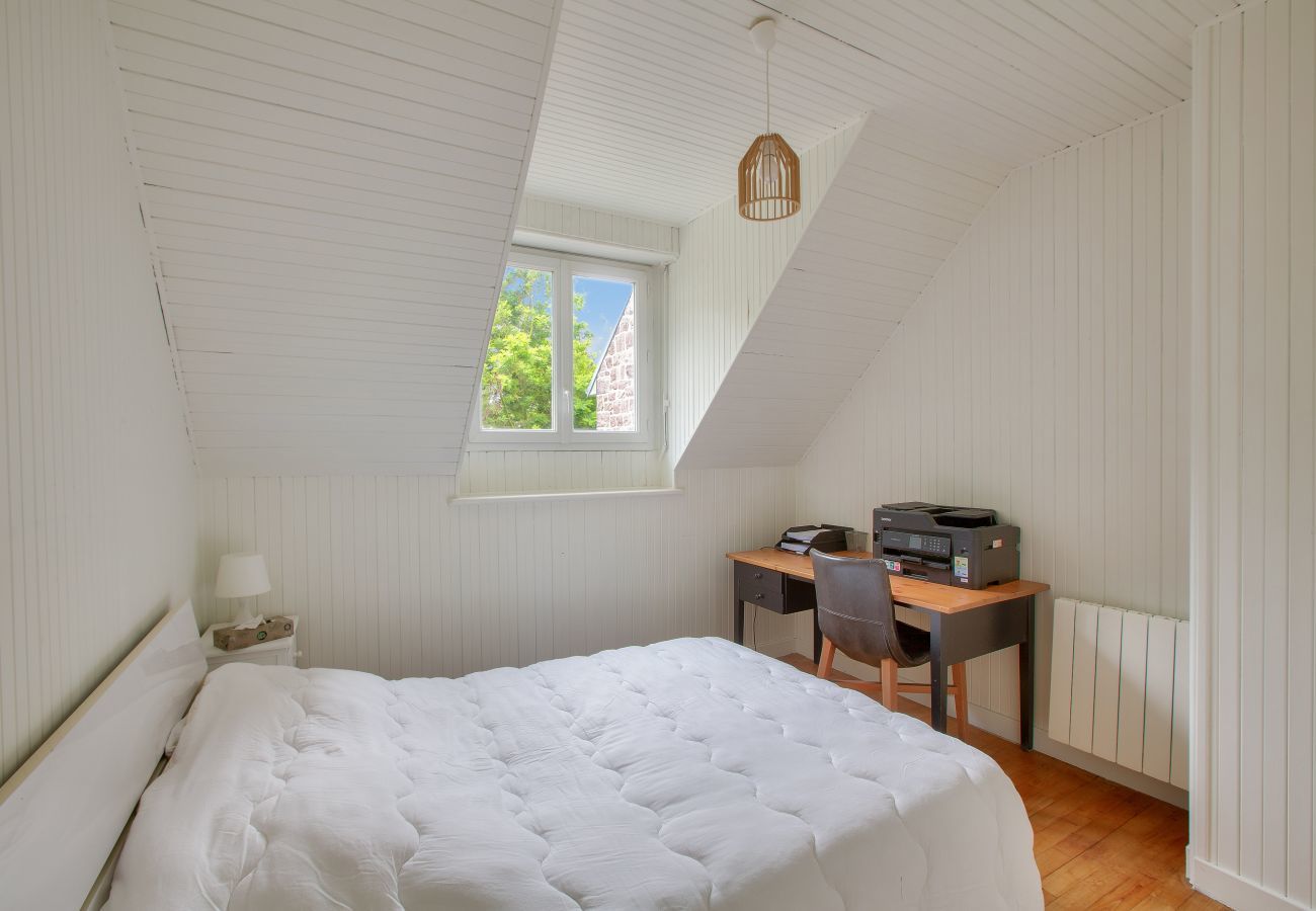 En la planta superior, cuatro habitaciones les esperan. En la primera, una cama doble (140x190) y un escritorio. En la segunda y la tercera, una cama doble. En la última habitación, dos camas individuales (80x200) que pueden unirse para formar una gran cama Queen-size, y un armario. Un cuarto de baño con ducha, lavabo, espejo simple y aseo, así como un baño con bañera y ducha y un lavabo con espejo retroiluminado, completan este nivel.