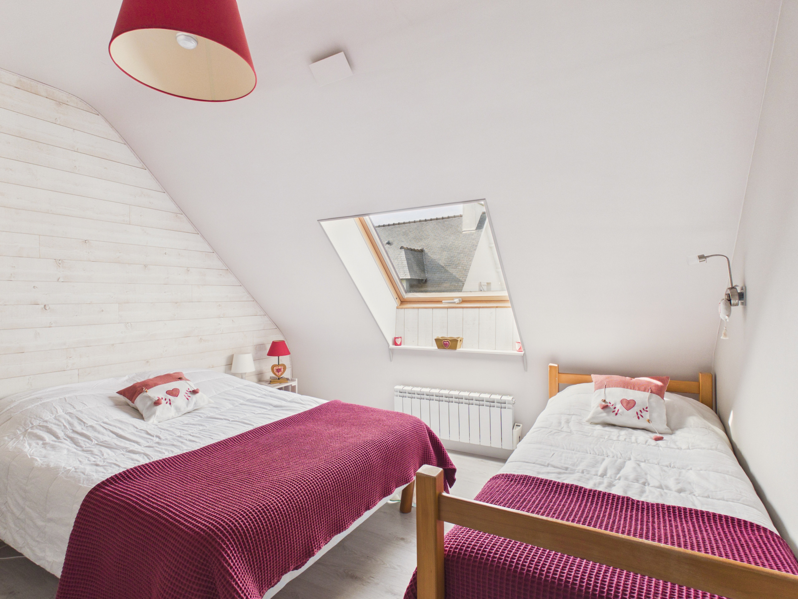 En la planta superior, cuatro dormitorios te reciben. En el primero, una cama doble (140x190) y un escritorio. En el segundo y tercero, una cama doble. En la última habitación, dos camas individuales (80x200) que pueden unirse para formar una cama grande tipo Queen-size, y un armario. Un cuarto de agua con ducha, lavabo, espejo simple e inodoro, así como un cuarto de baño con bañera y ducha así como un lavabo con espejo retroiluminado, completan este nivel.