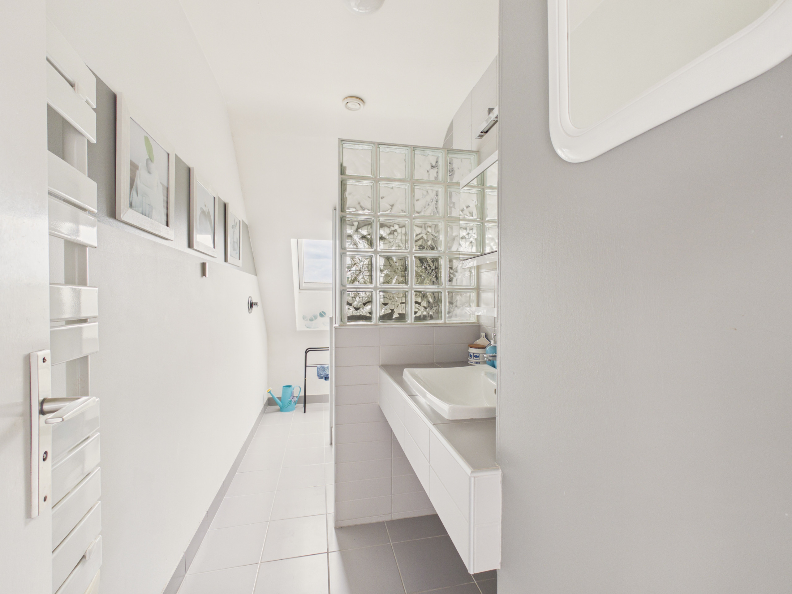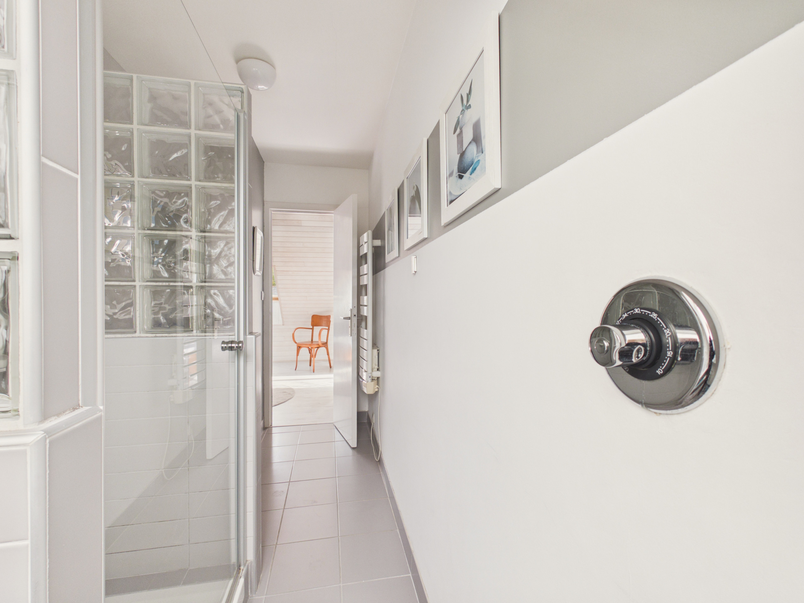 Siempre en la planta baja, encontrará un WC independiente, una ducha, una habitación con cama Queen-size, así como un cuarto de baño con ducha, doble lavabo e inodoro.