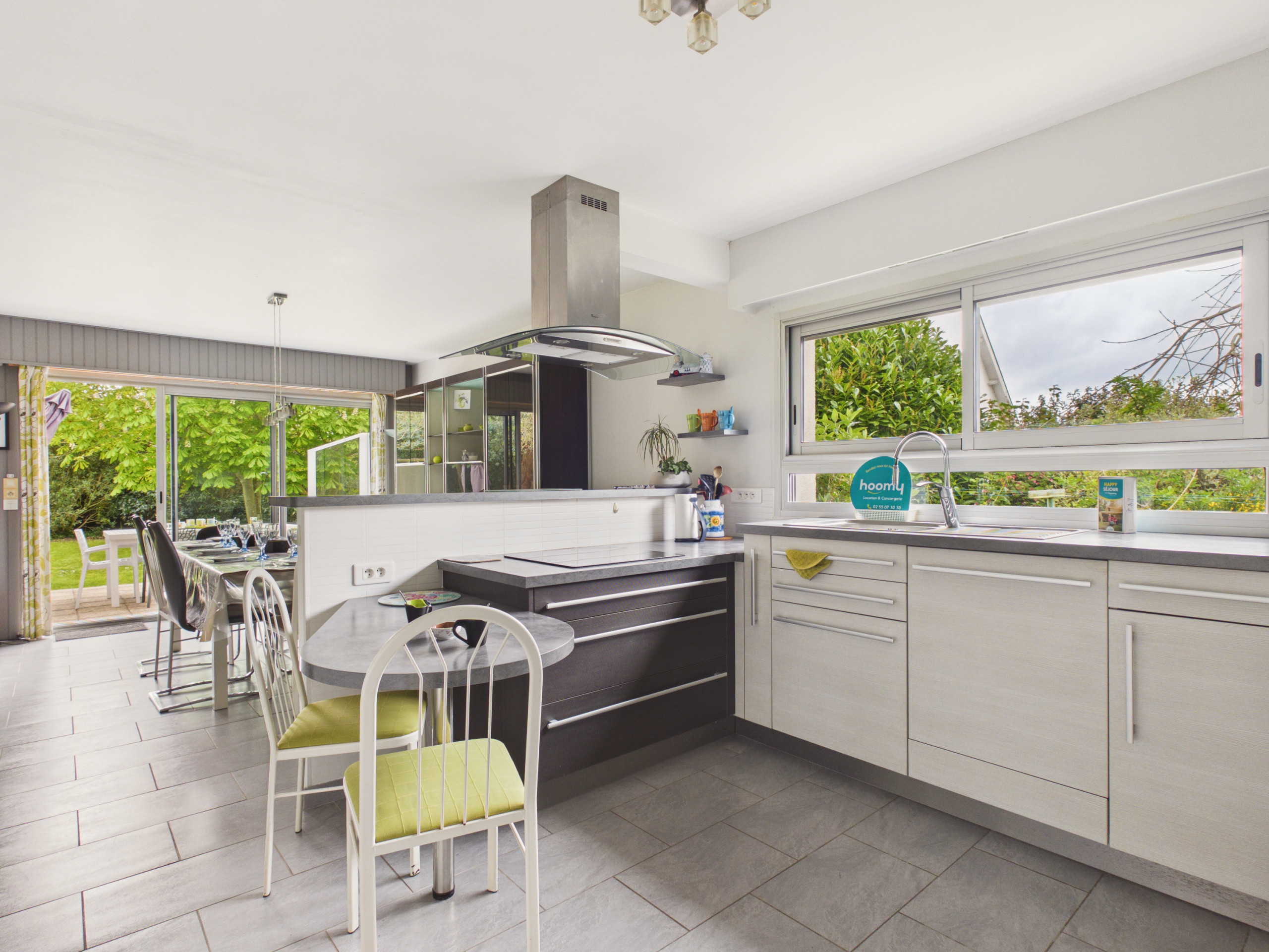 En la planta baja, descubrirá una gran sala de estar con una cocina nueva y completamente equipada. Para preparar sus comidas, encontrará una placa de inducción, un horno, un microondas, un refrigerador y un lavavajillas para mayor comodidad. Para sus desayunos, una tetera, una tostadora, una cafetera de filtro y una Nespresso le ayudarán a comenzar bien el día. La cocina también dispone de un comedor donde podrá reunirse alrededor de la gran mesa, entre dos grandes ventanales, para tomar sus comidas todos juntos. Al fondo de la sala, un cómodo salón con un videoproyector le espera para sus noches de cine.
