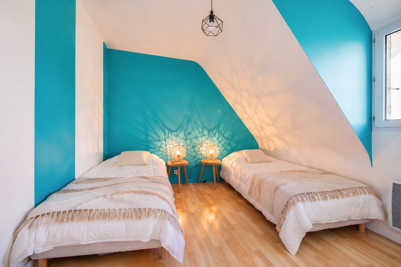 En la segunda planta, encontrará las dos últimas habitaciones, cada una equipada con dos camas individuales (90x190 cm).