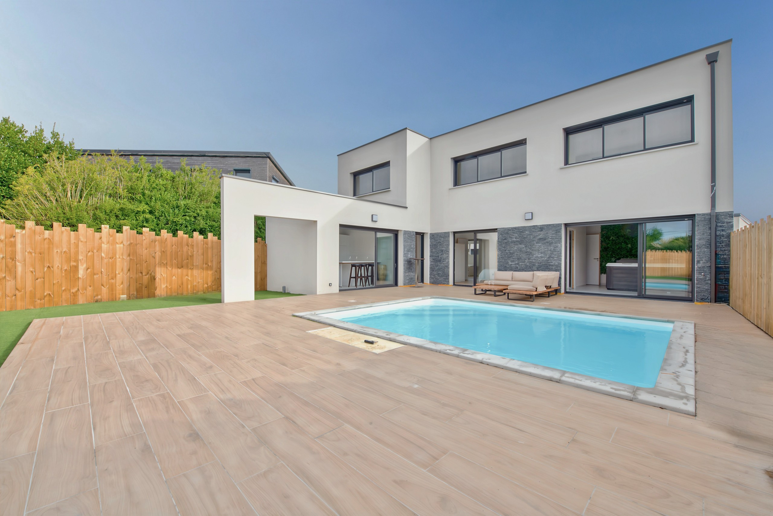 Bienvenido a Plouguerneau en esta villa completamente nueva diseñada para unas vacaciones con todo tipo de comodidades. Disfrutará de un gran jardín con piscina climatizada, amplia terraza equipada, jacuzzi y terreno de petanca privado, así como de una segunda terraza en la planta superior que ofrece una espléndida vista al mar. La playa se encuentra a solo 800 metros y el pueblo con sus comercios a 2 km. Completamente equipada, la casa puede acoger cómodamente hasta 9 viajeros.