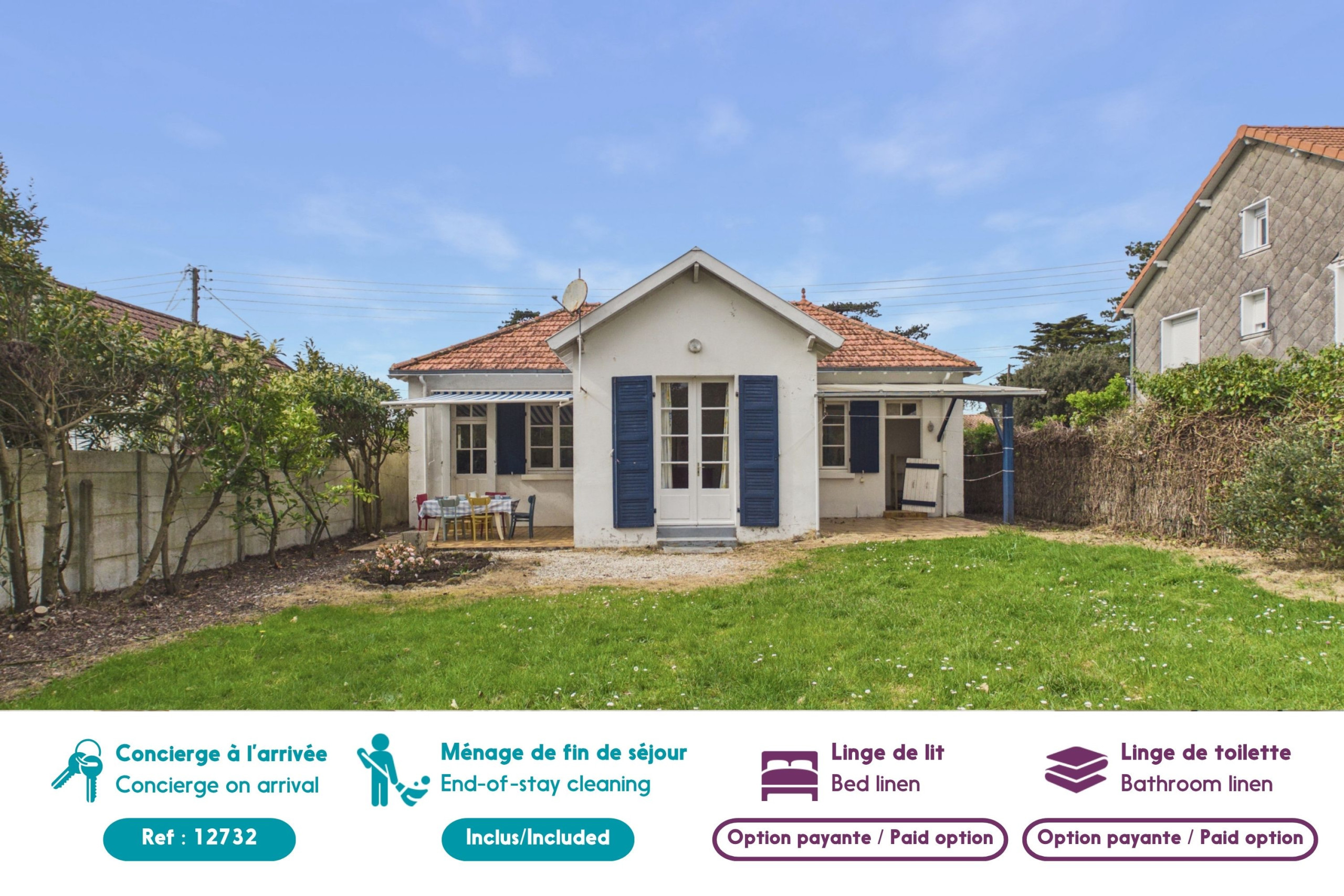 Esta casa de una planta de 73 m², típica de las antiguas casas de pescadores, se encuentra en el codiciado barrio de "Gourmalon", donde villas, chalets, capilla y quioscos cuentan cada uno una historia. Se compone de tres habitaciones dobles pasantes, un jardín cerrado y una terraza de 20 m² que puede acoger hasta 6 personas.
