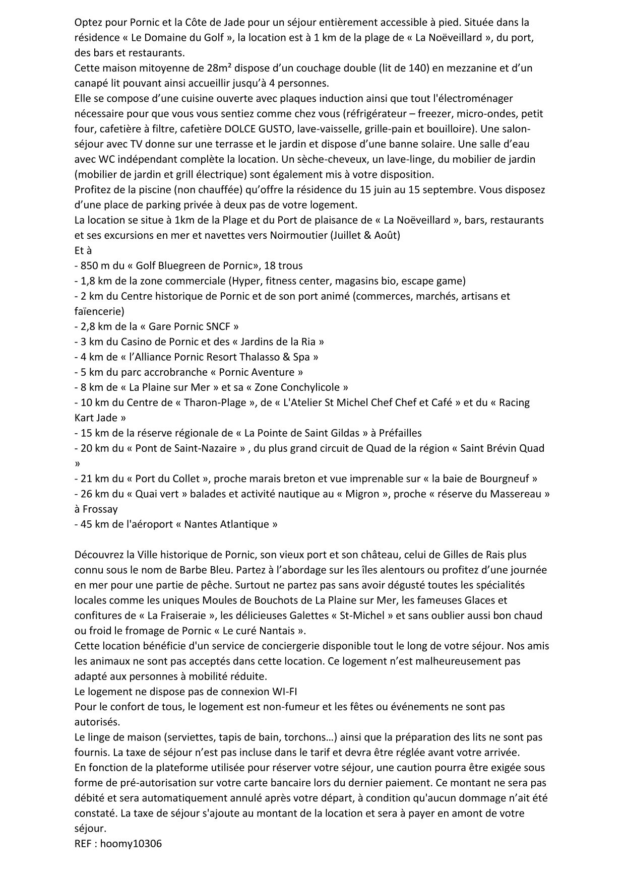 A 2 km de «Pornic Aventure», un parque para trepar árboles y un centro acuático en «Val Saint Martin», y del campo de golf «Golf Bluegreen Pornic», de 18 hoyos