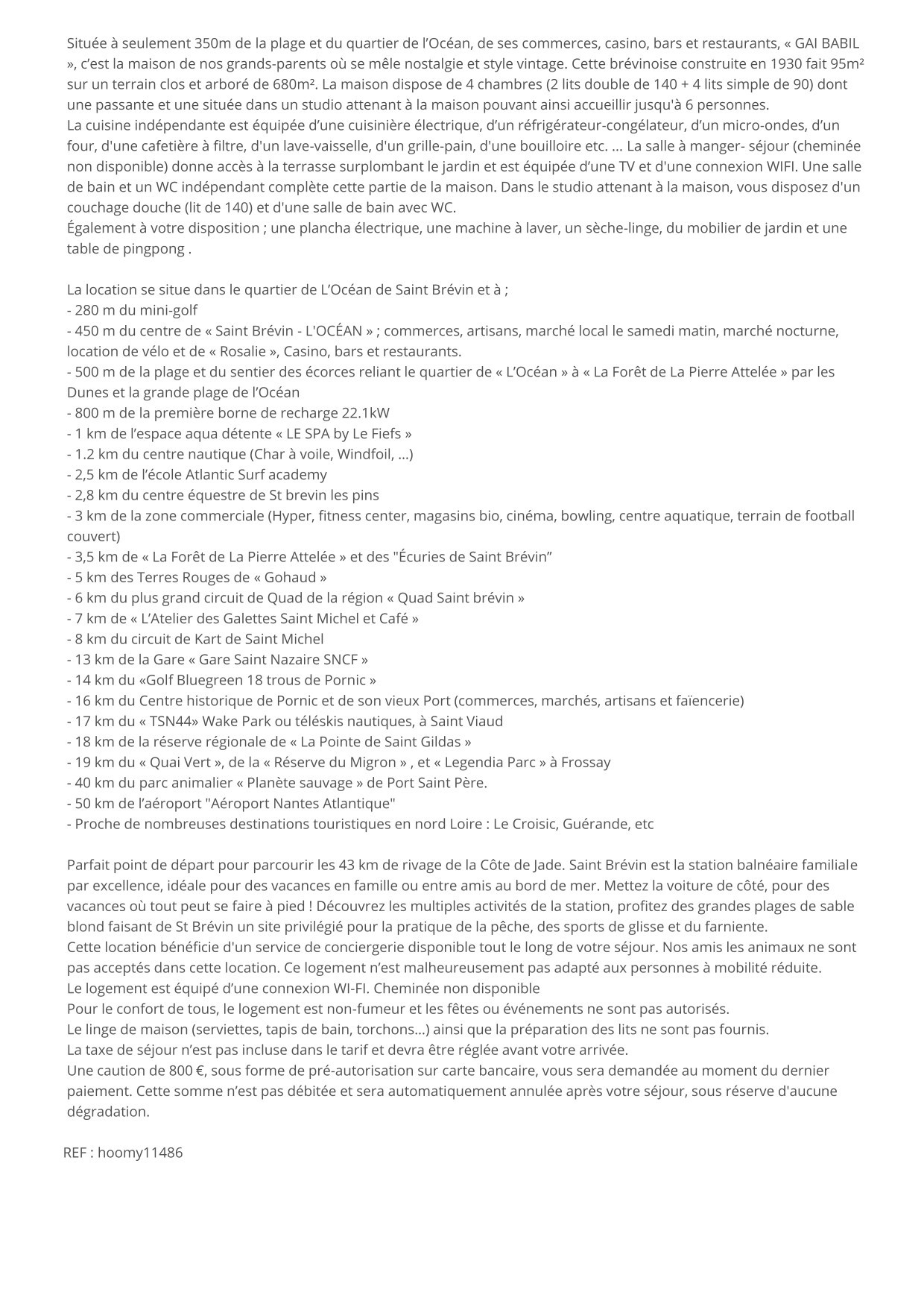 • A 700 metros del centro de "Saint-Brevin-les-Pins", donde encontrará una gran variedad de comercios, bares y restaurantes para amenizar su estancia.
