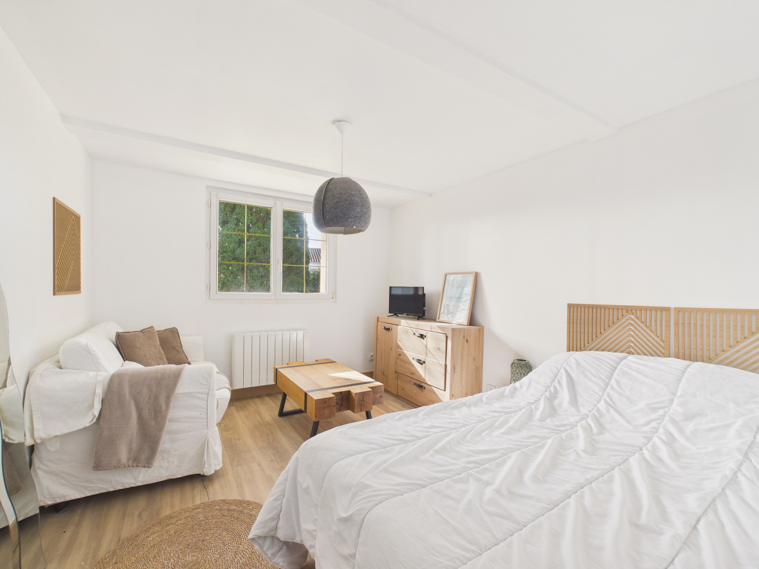 Habitación 3 (planta baja): una cama doble (140x190), un sofá (que puede servir como cama adicional para 2 personas), un cajón y un televisor (sin canales por el momento)