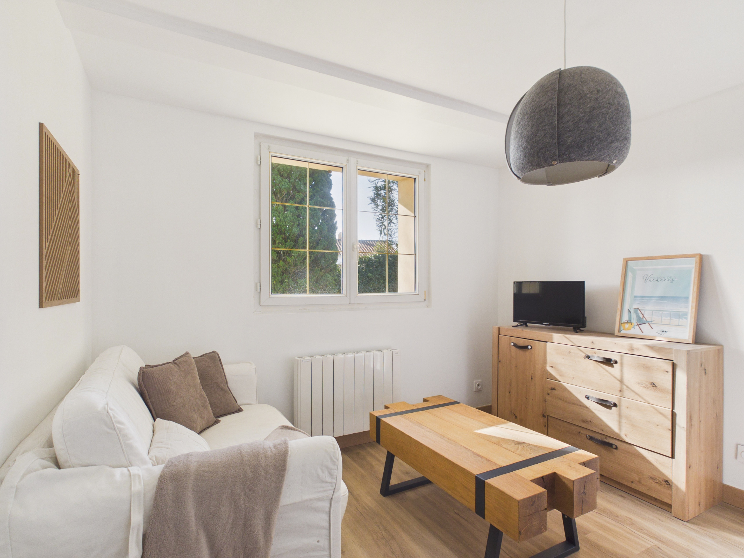 Al entrar, descubrirá un salón acogedor para momentos de relajación, un comedor ideal para compartir comidas agradables y una cocina independiente totalmente equipada (placa de inducción, refrigerador, microondas, horno, congelador, lavavajillas, cafetera de filtro, cafetera Nespresso, tostadora y exprimidor) donde preparar deliciosas comidas se convertirá en un placer. Si prefiere disfrutar del exterior, una gran terraza de madera decorada en un estilo de borde de mar lo espera. Imagínese disfrutando de una barbacoa o un desayuno, mientras que el gran jardín verde será perfecto para momentos de calma y juegos.