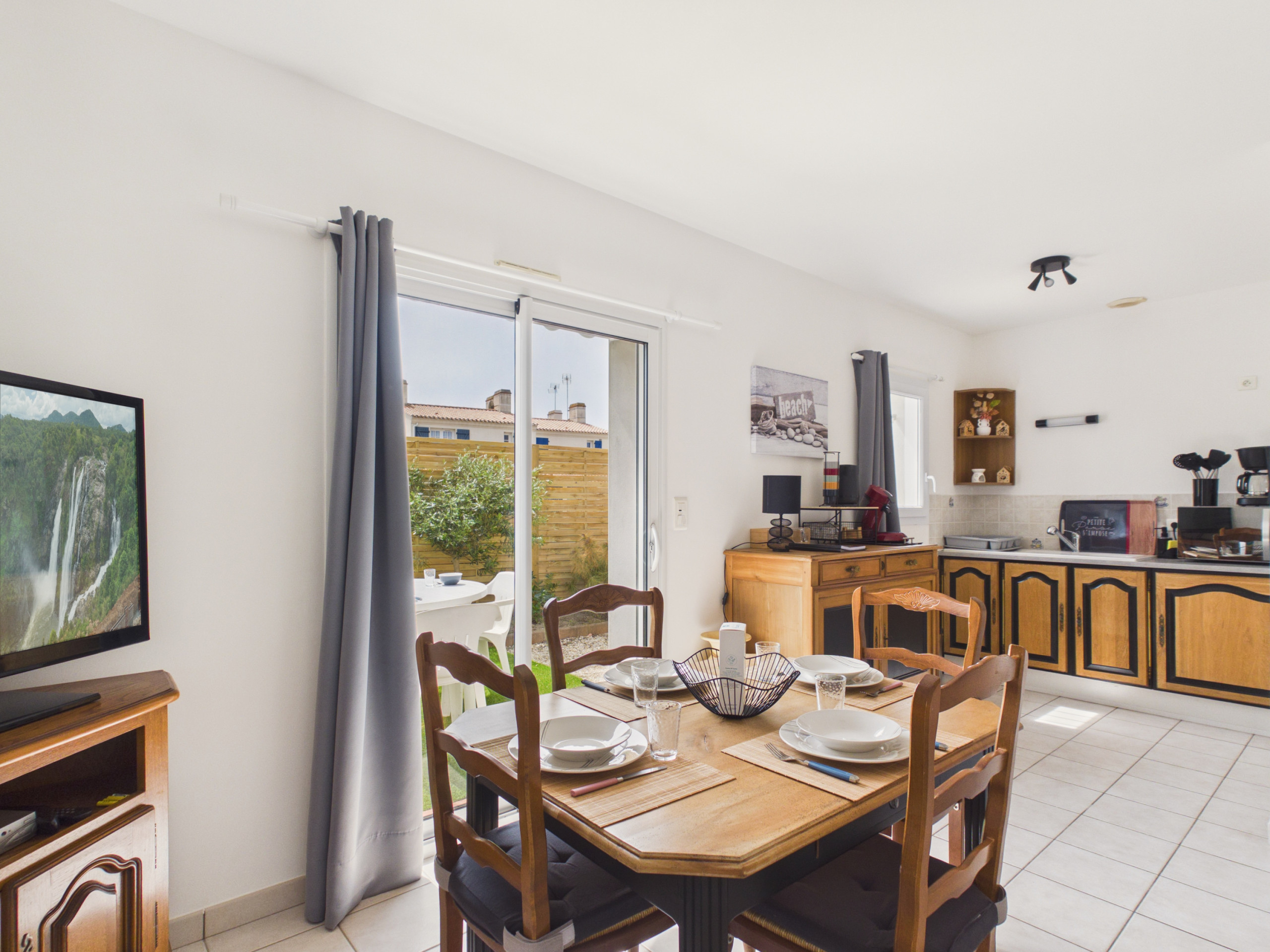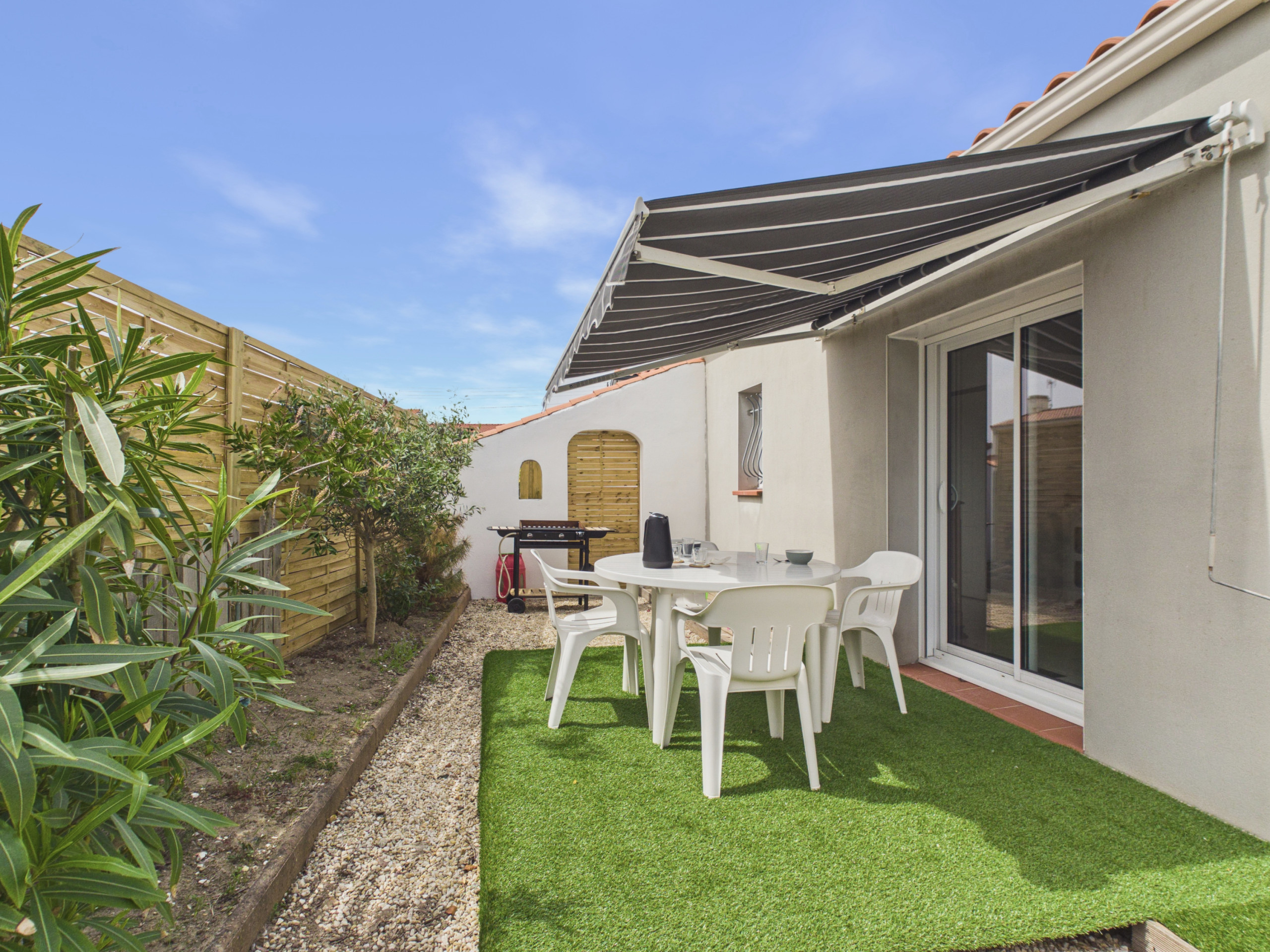 En el exterior, un pequeño patio acondicionado con muebles de jardín le permitirá disfrutar de comidas al aire libre o momentos de relajación bajo el sol de Vendée.