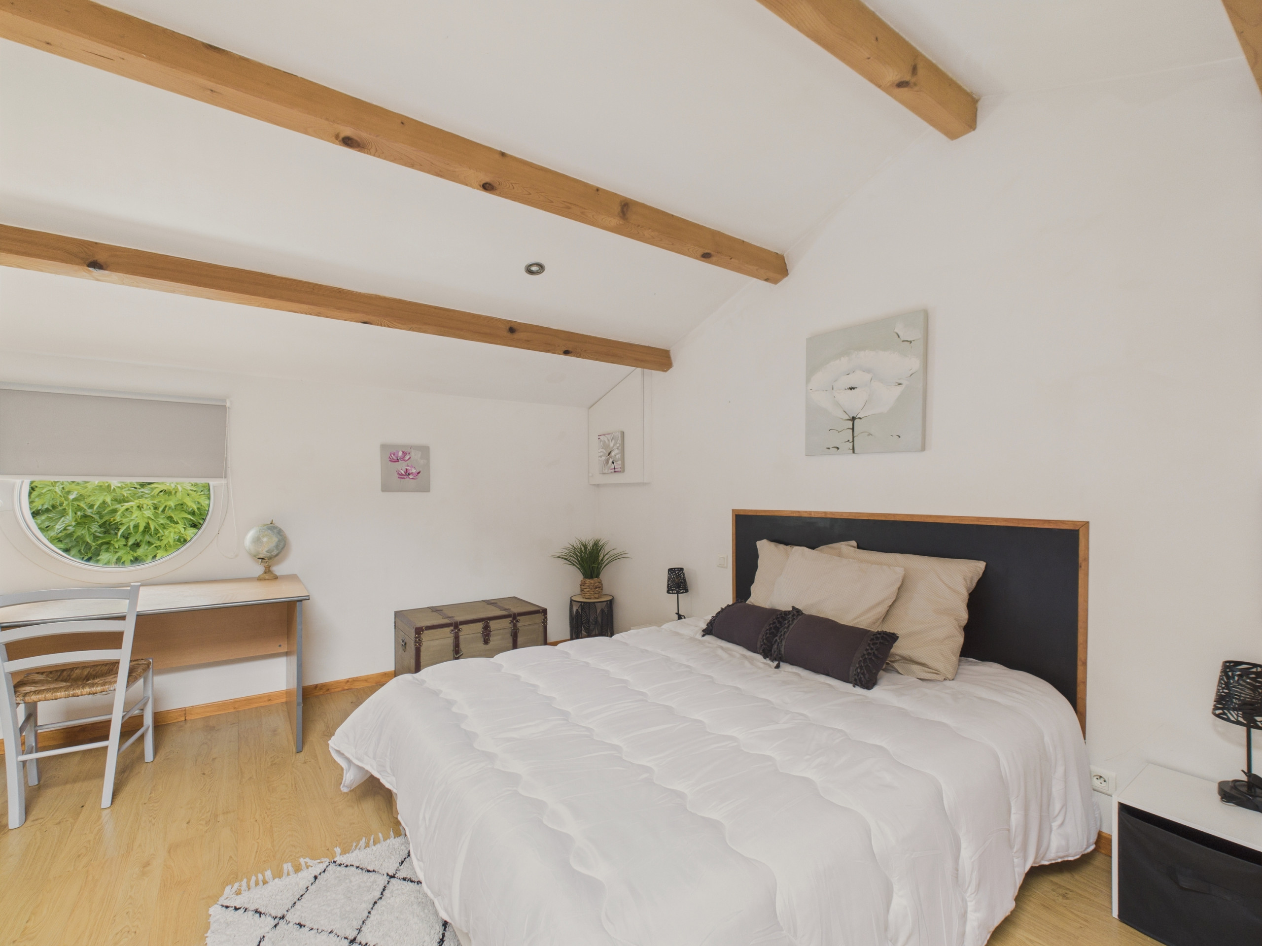 En la zona de dormitorios, encontrará tres primeras habitaciones, dos de ellas equipadas con camas dobles (140x190) y otra con una cama Queen Size (160x200). También accederá a un altillo que dispone de una última cama Queen Size (160x200), así como de un escritorio, ofreciendo un espacio de trabajo para aquellos que lo necesiten. Un cuarto de baño con ducha y bañera también está disponible.