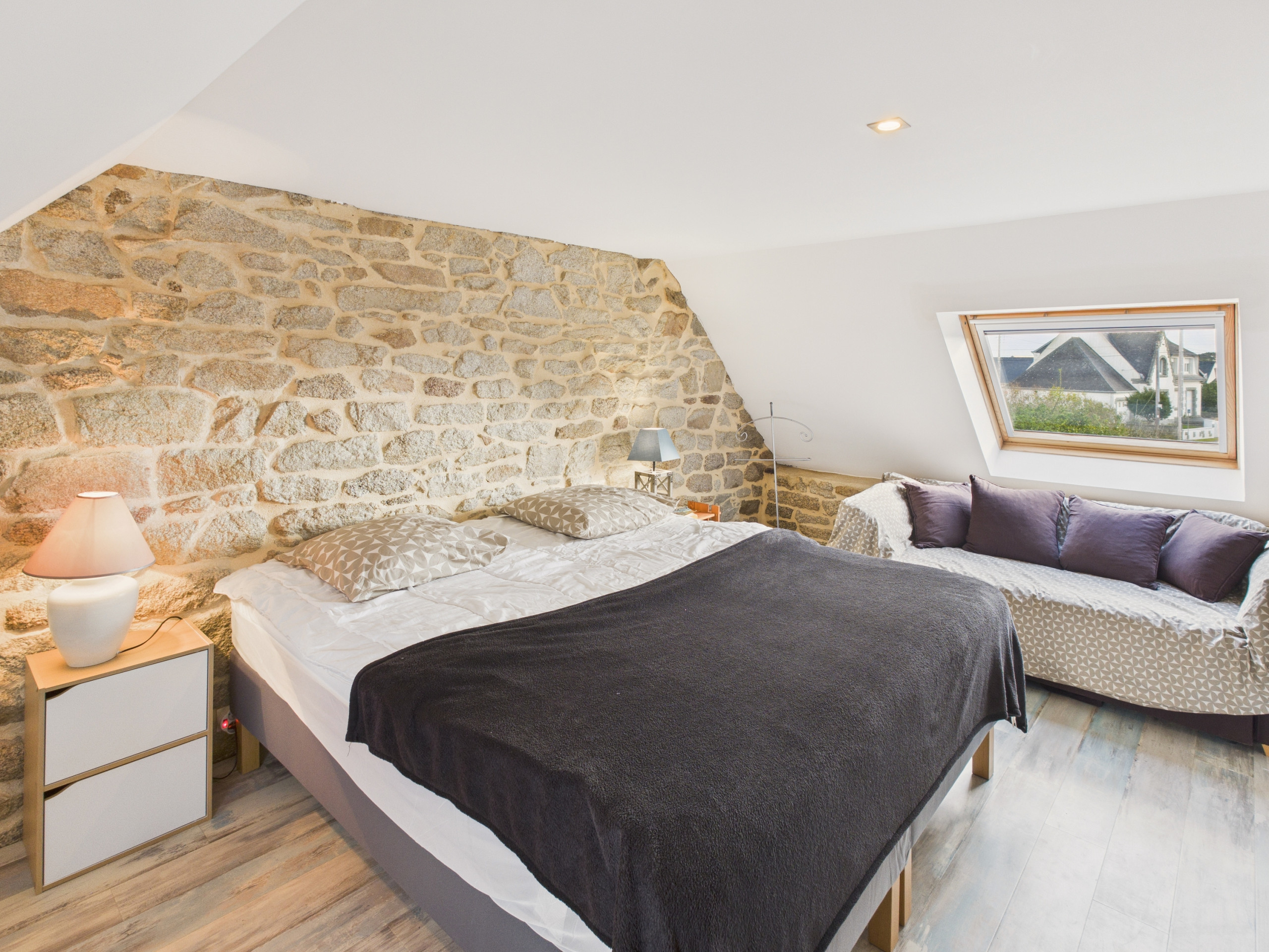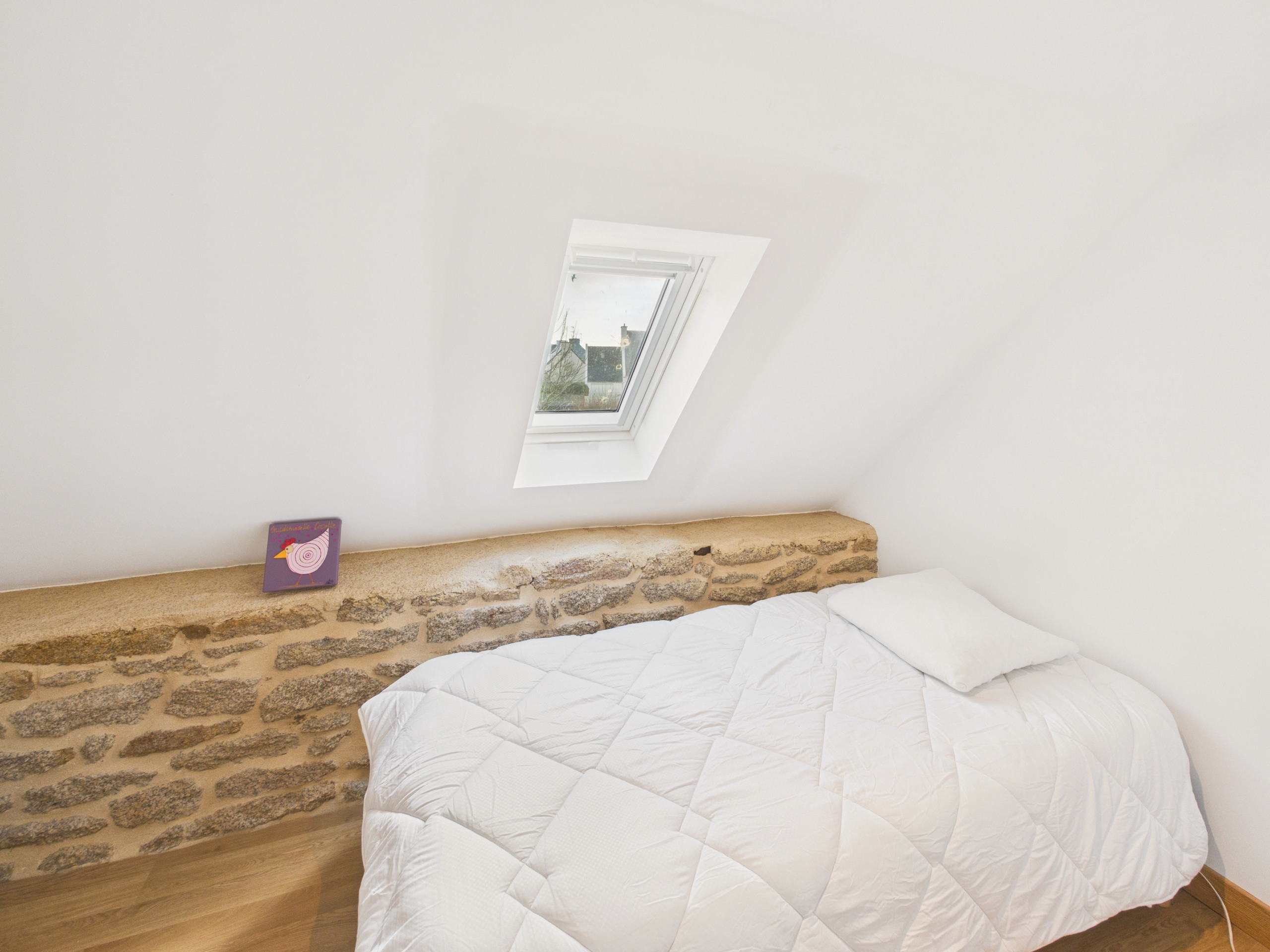 En la planta superior, dos habitaciones y un cuarto de baño con bañera le esperan. La primera es una gran habitación equipada con una cama Queen Size (160x190 cm) y un armario. La segunda, ideal para tres personas, cuenta con una cama doble (140x190 cm) y una cama individual (90x190 cm).