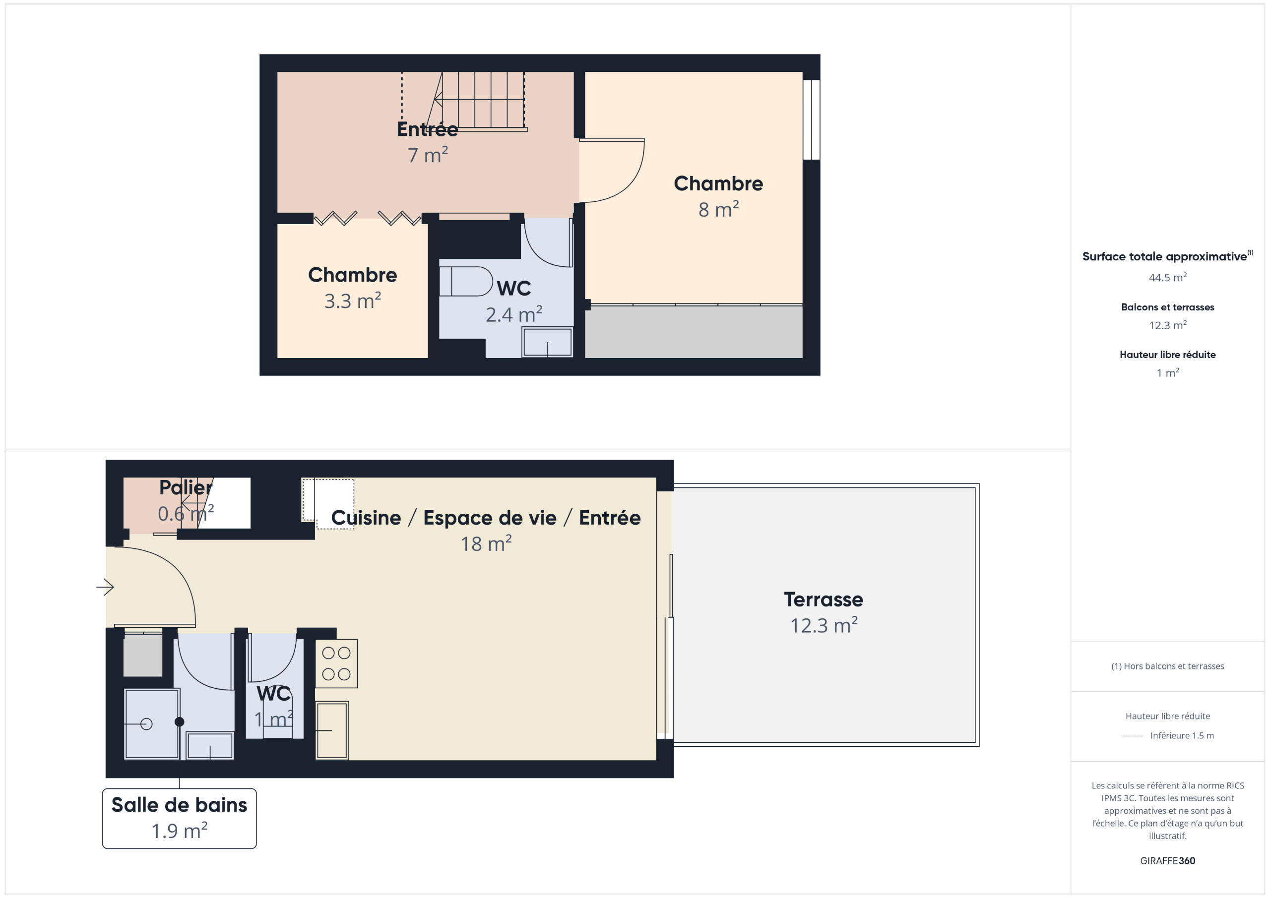La salle de bain comprend une douche et un sèche-cheveux. Les WC sont séparés pour plus de confort.