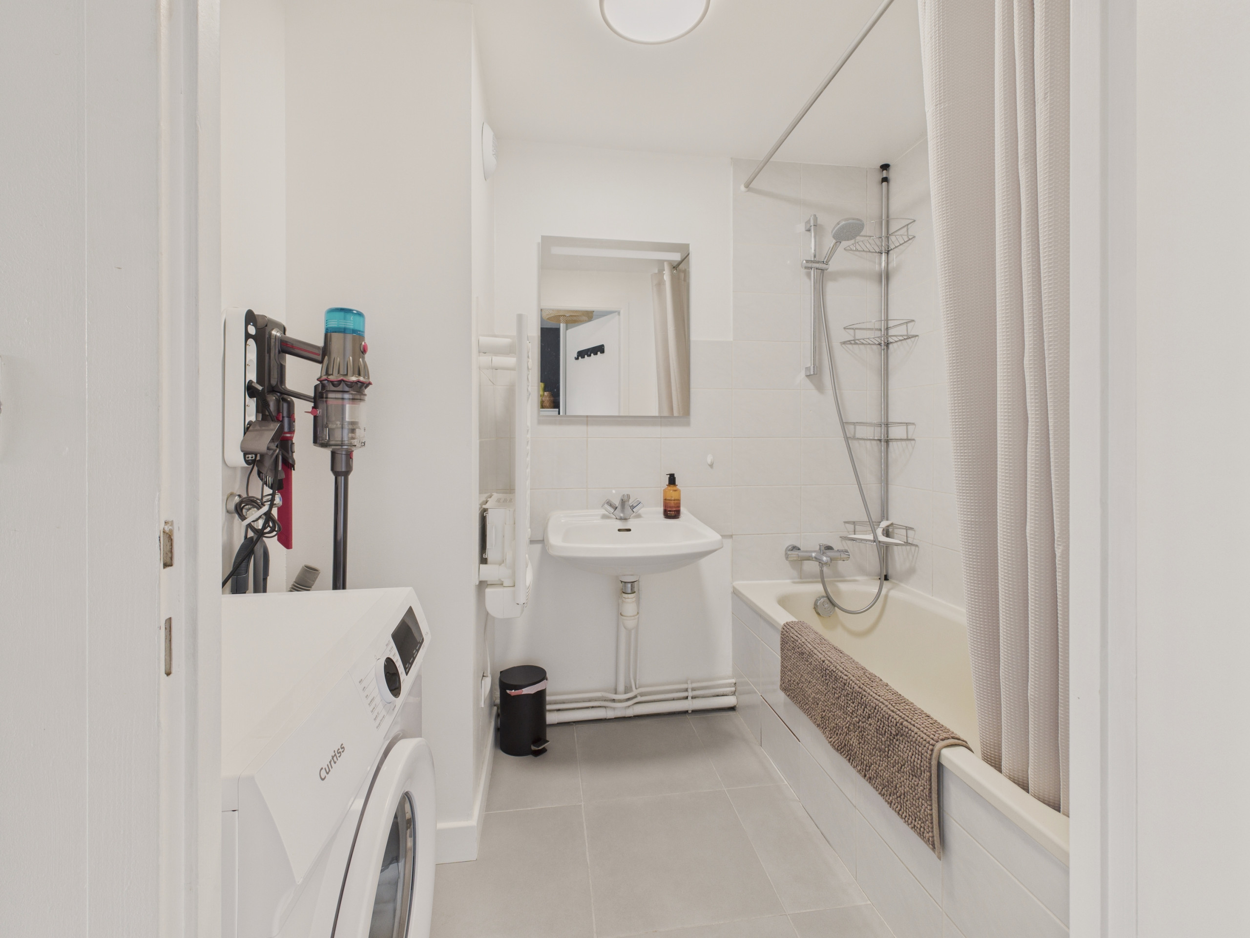 L’appartement comprend également une chambre avec un lit double (140x190) ainsi qu’une salle de bain équipée d’un sèche-cheveux et d’une machine à laver.