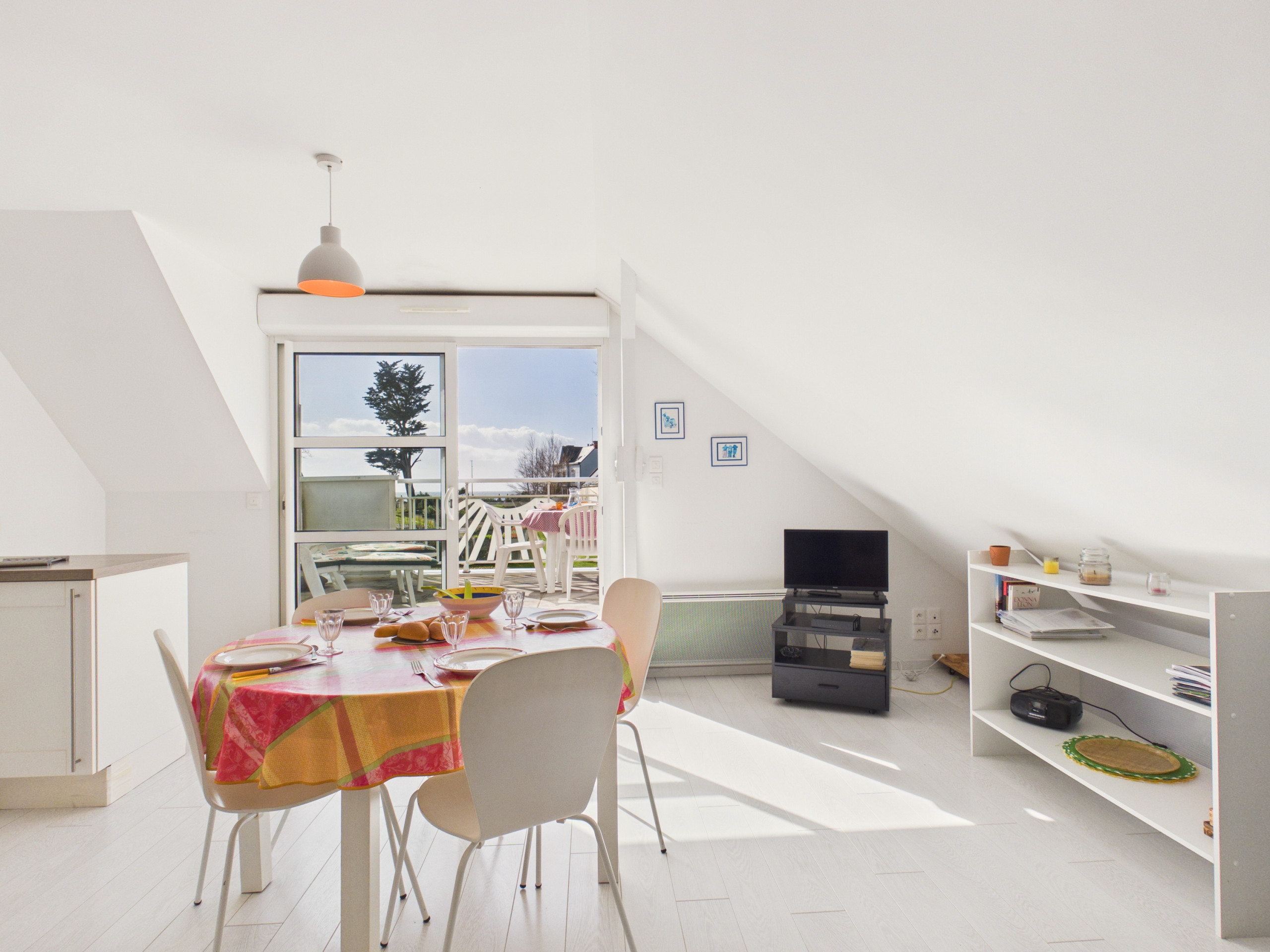 Idéalement situé à Sarzeau, sur la presqu’île de Rhuys, cet appartement vous séduira par sa belle vue sur l’océan depuis le balcon. Entièrement équipé, il offre tout le confort nécessaire pour accueillir jusqu’à 4 voyageurs. Aux beaux jours, profitez du balcon aménagé pour prendre vos repas au soleil. La plage se trouve à seulement 100m, au bout de l’impasse, et le sentier côtier tout proche est parfait pour de belles balades à pied ou à vélo le long de l’océan.