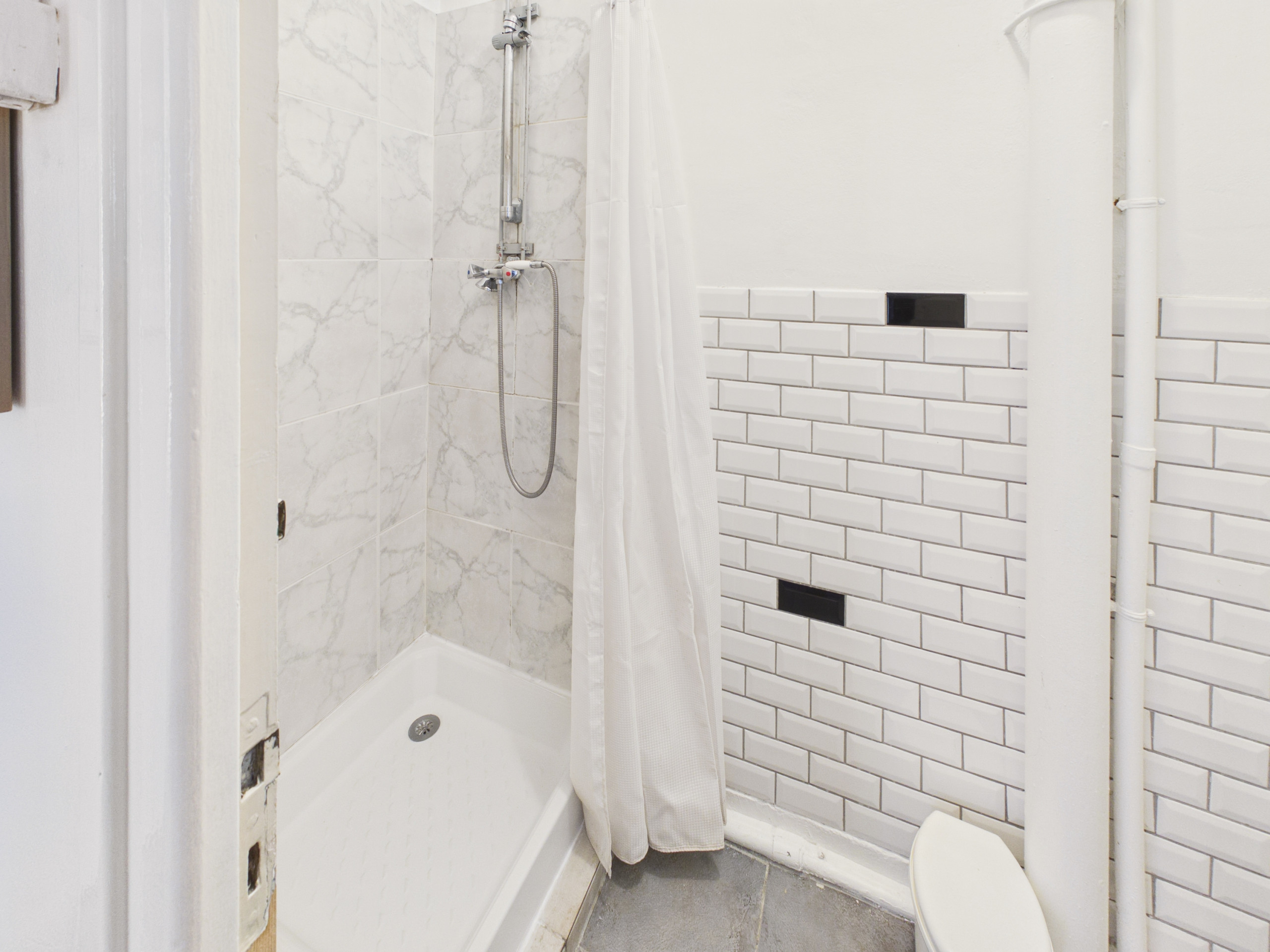 Vous accéderez à une salle d’eau commune avec WC et un autre WC est séparé à l'étage.