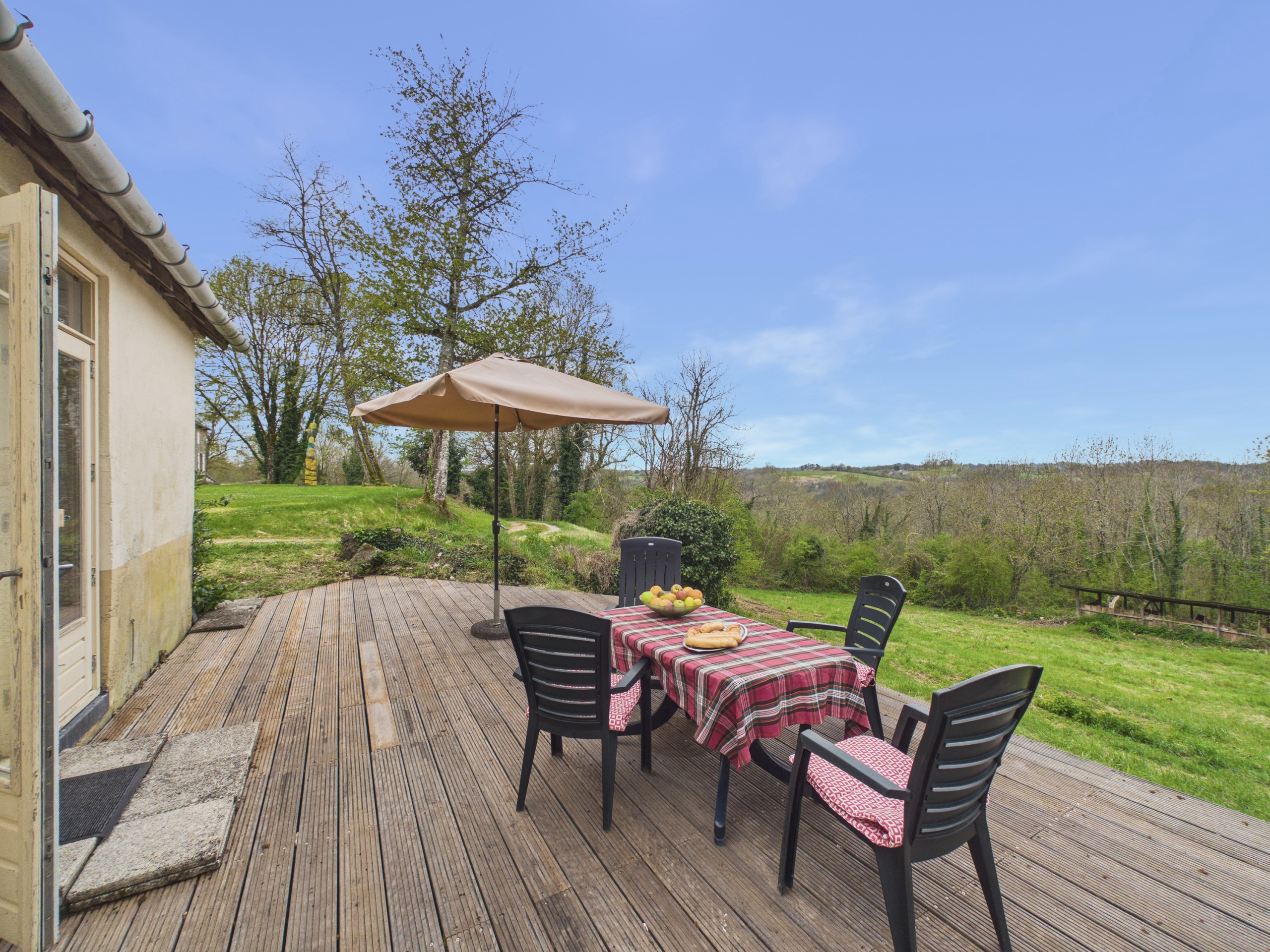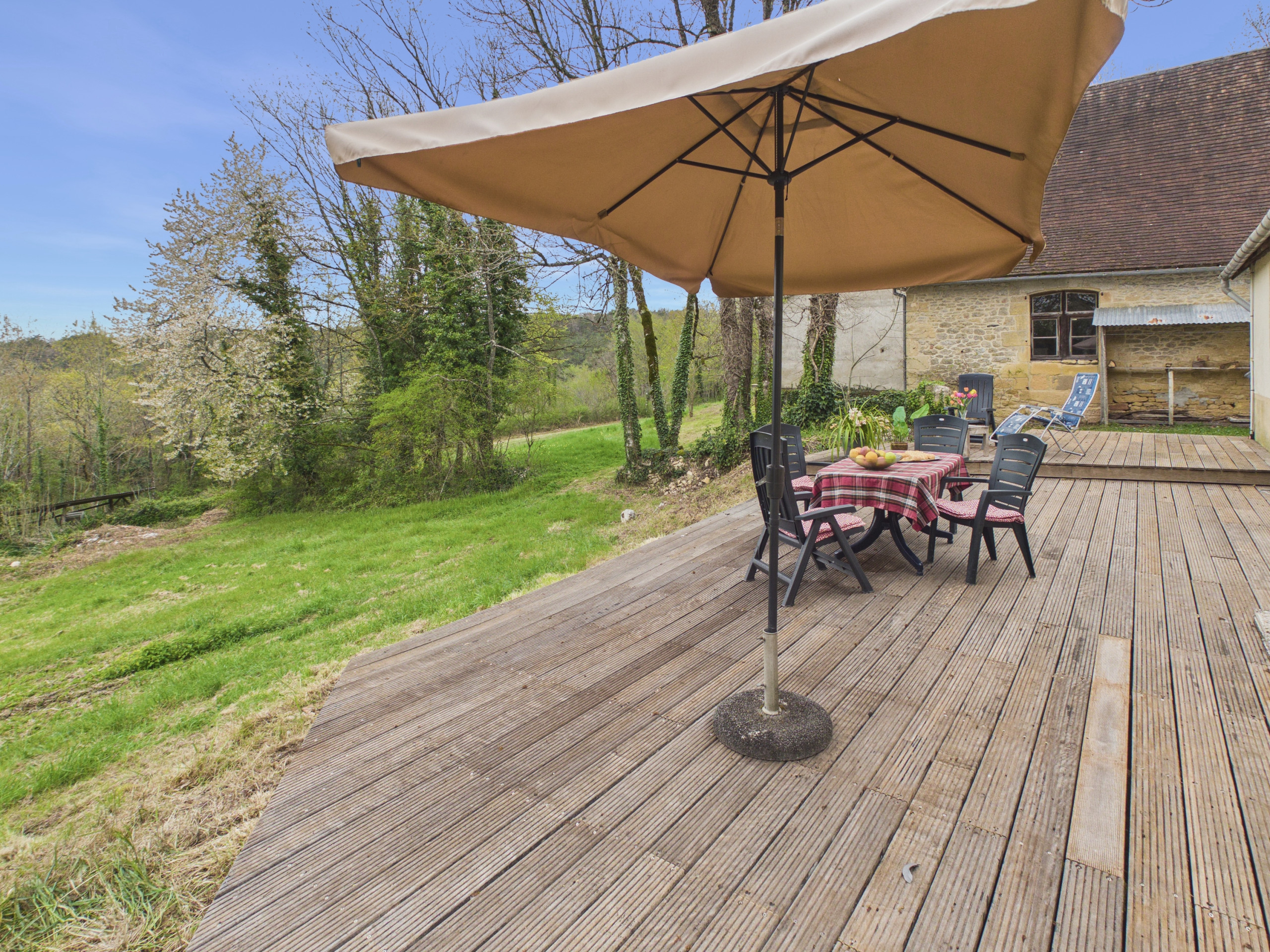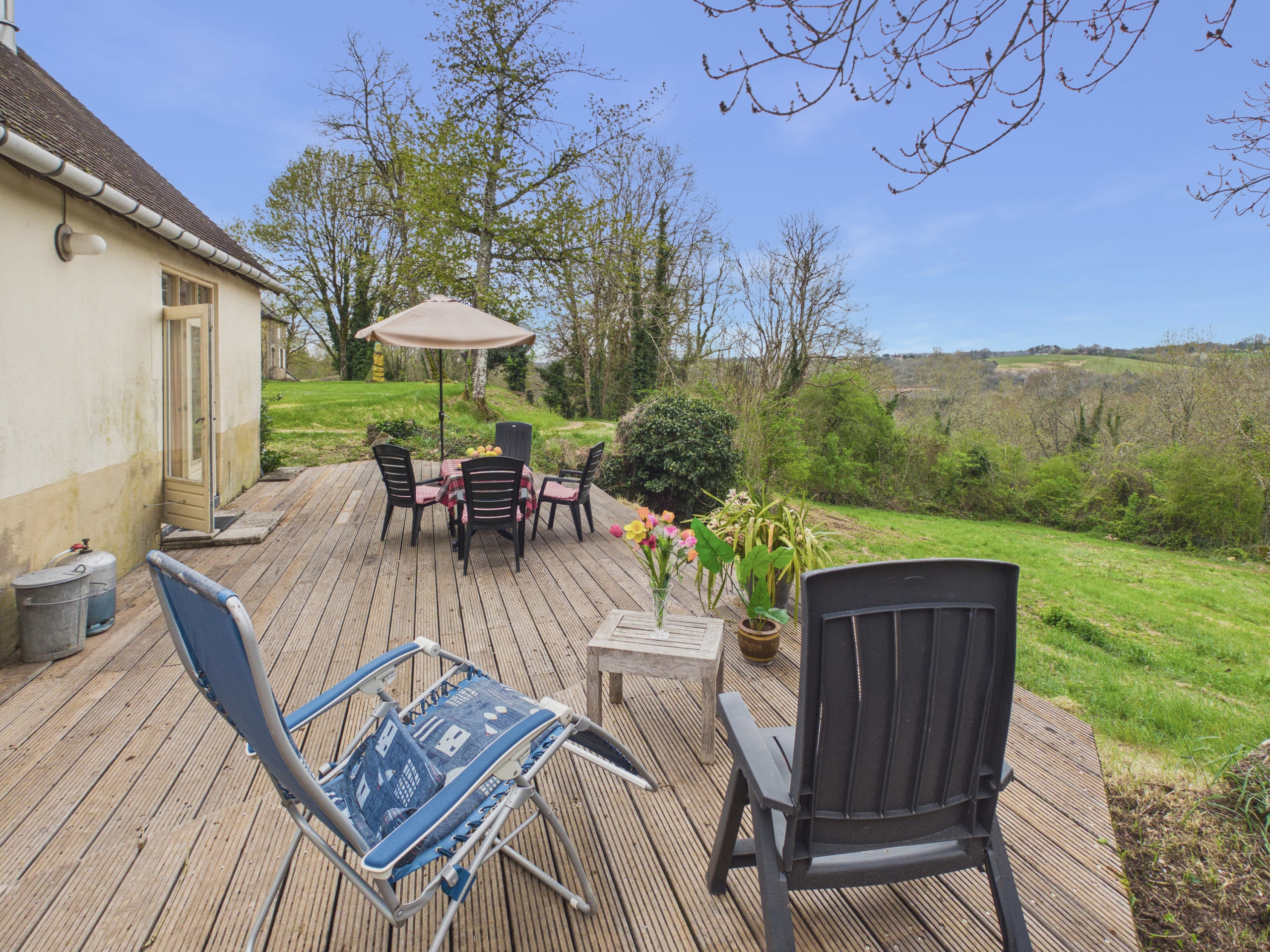 À l'extérieur, vous pourrez profiter des espaces verts et de la terrasse pour vous détendre. Vous aurez également l’occasion de partager un repas en plein air grâce au mobilier de jardin mis à votre disposition. Le calme et la verdure environnante ajoutent un charme indéniable à ce lieu idéal pour se ressourcer.