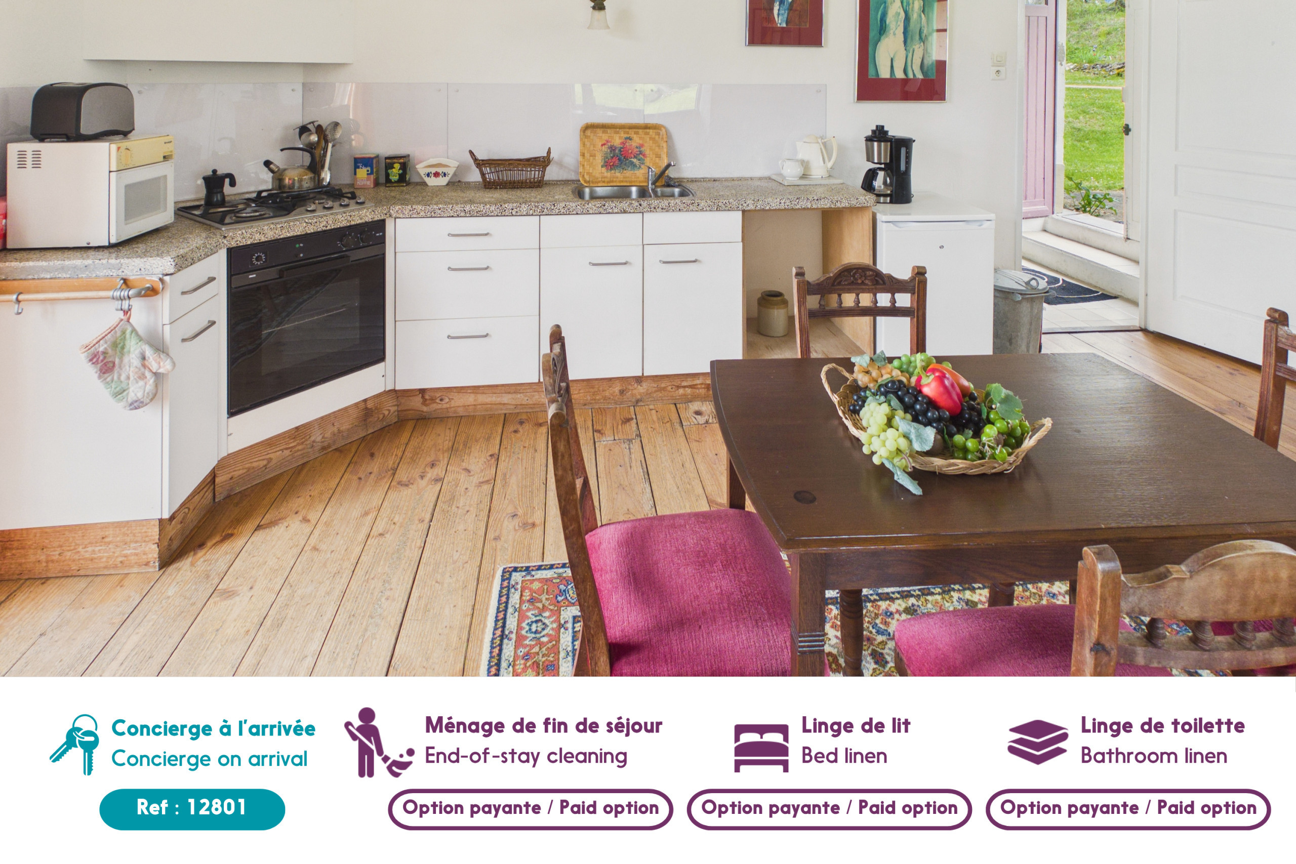 Si vous souhaitez l’option linge ou serviettes, vous pourrez en faire la demande lors de votre échange téléphonique avec le propriétaire. Durant le séjour, il n'y aura pas de renouvellement du linge de maison, ni de ménage.