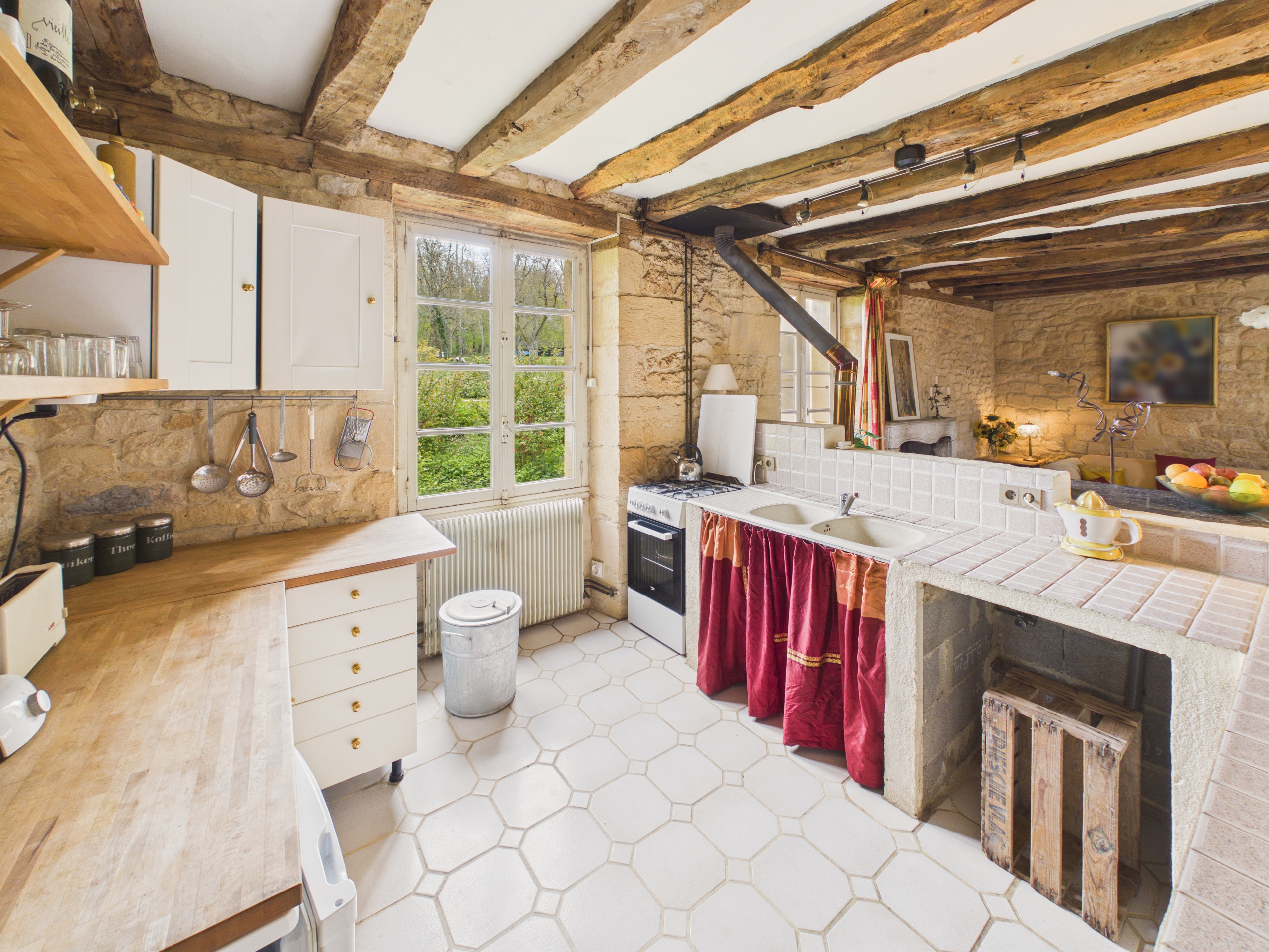 La maison se compose d'une belle pièce de vie comprenant un salon avec un canapé et fauteuil confortables. Le coin salle à manger, avec sa grande table, vous permettra de partager des repas conviviaux tout en admirant la vue sur le jardin. La cuisine, ouverte sur le reste de la pièce de vie et équipée, dispose de tout le nécessaire pour concocter de délicieux repas : gazinière, frigo, four électrique, grille-pain, bouilloire, cafetière à filtre et tous les ustensiles dont vous pourrez avoir besoin.