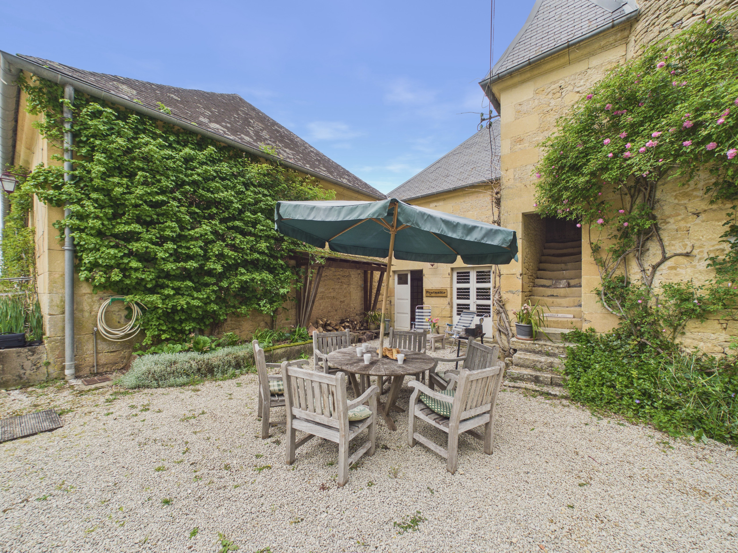 À l’extérieur, vous pourrez profiter des espaces verts et vous y détendre. Vous aurez également l’occasion de partager un repas en plein air grâce au mobilier de jardin. Le calme et la verdure environnante ajoutent un charme indéniable à ce lieu idéal pour se ressourcer.