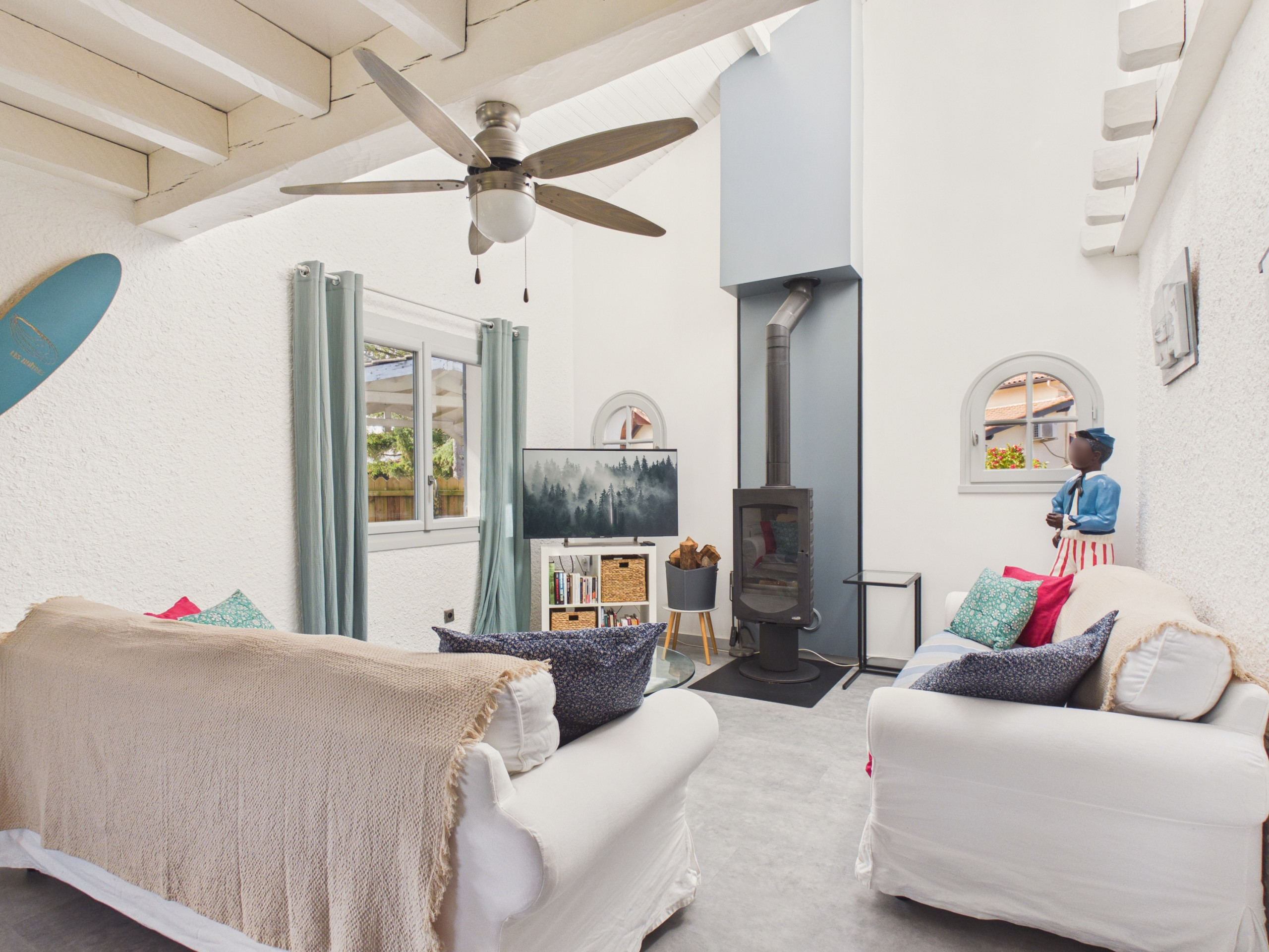 Ici, on mise sur ce qui était déjà là. On a récupéré de beaux meubles anciens pour garder le cachet d’origine de cette maison de bord de mer. On déconnecte, on oublie la tablette pour un jeu de société, on profite d’un grand jardin de 1000 m² pour jouer dehors ou se détendre à l’ombre d’un chêne centenaire. Dans ce beau jardin arboré, vous trouverez le mobilier nécessaire pour vos repas en extérieur et pour vous reposer ou lire un bon livre. Un barbecue vous attend pour préparer de délicieuses grillades sur la braise.