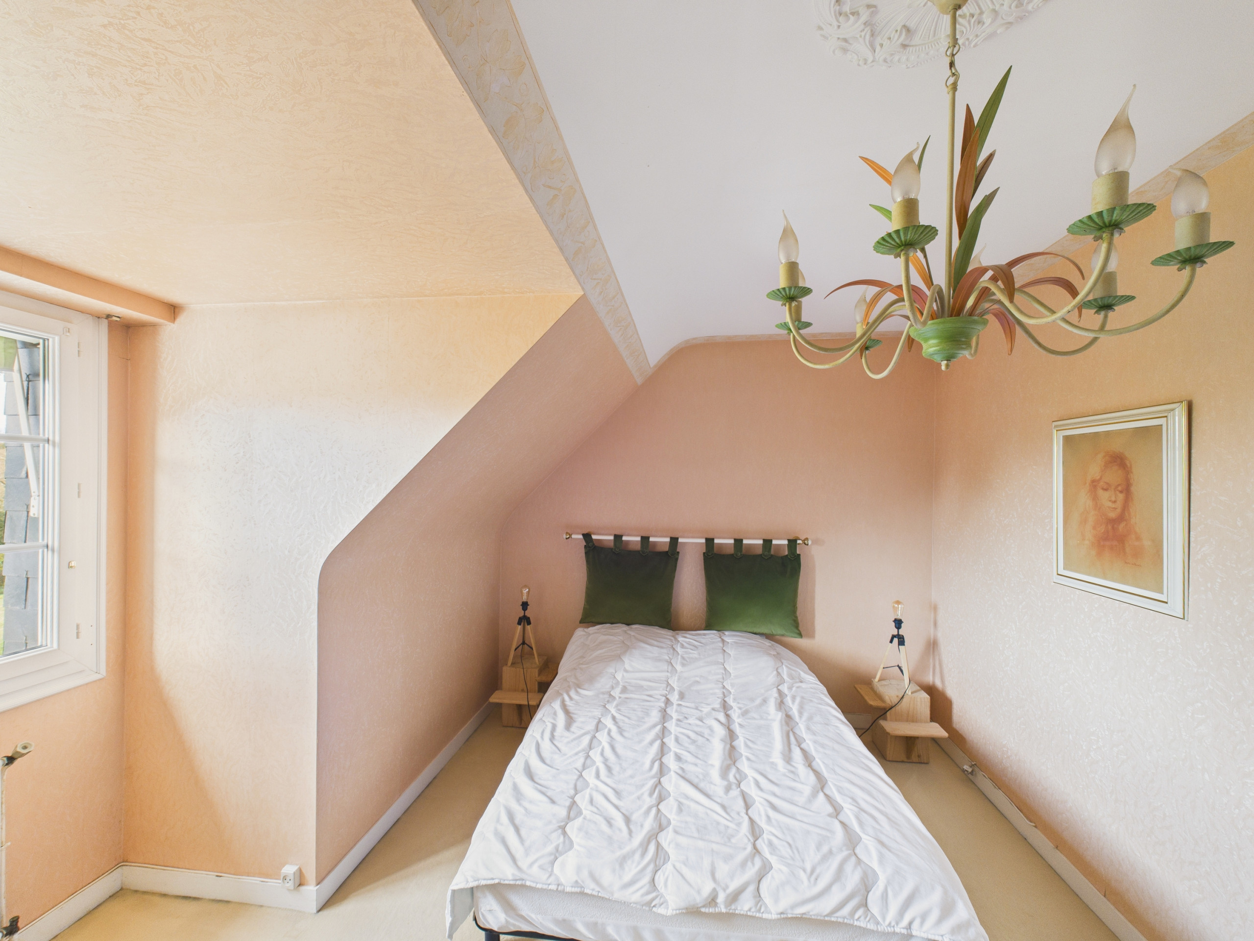 À l’étage, l’espace nuit offre deux belles chambres sous les toits, chacune avec sa salle d’eau avec douche. Vous trouverez dans l’une d’elles un grand lit Queen size (160/200), et dans l’autre un lit double et une TV.