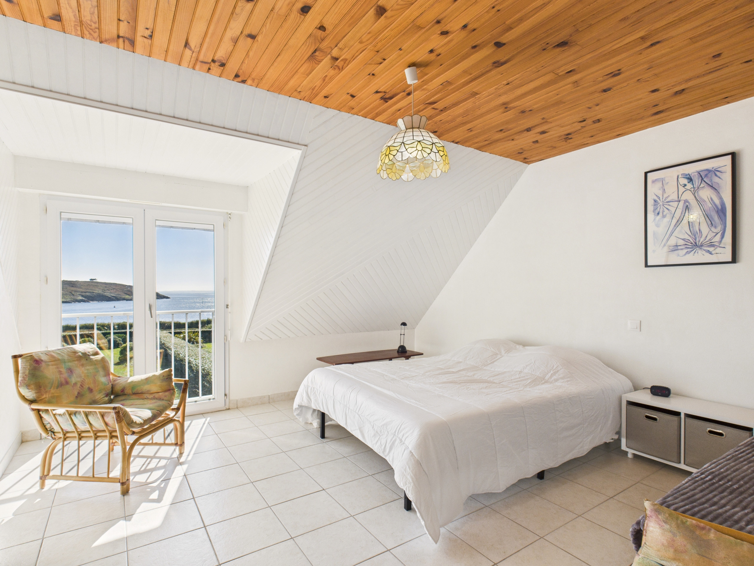 - Chambre 2 l à l’étage l un lit Queen Size (160x200 cm), une armoire de rangement et une vue sur la mer.