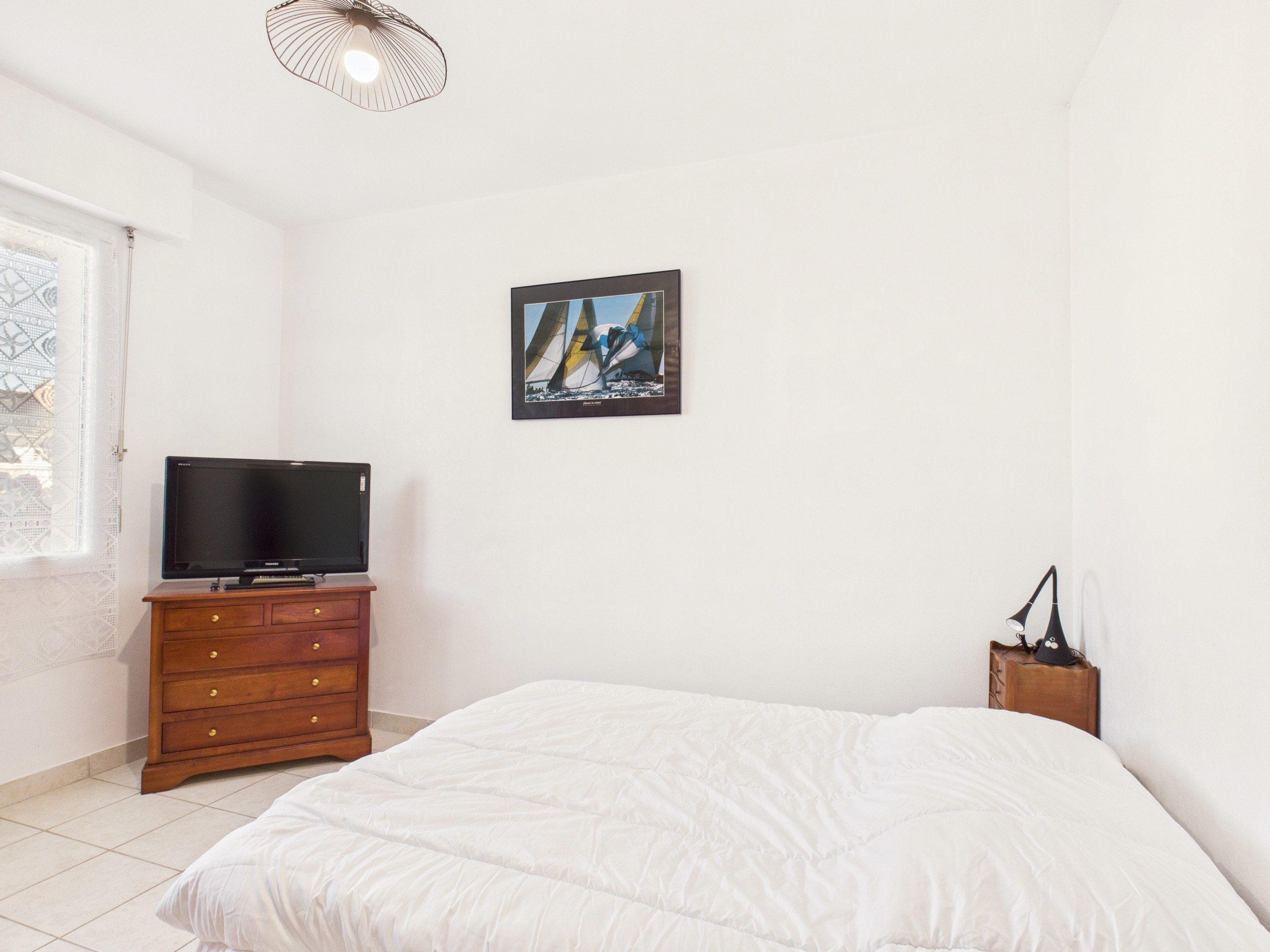 - Chambre 3 l à l’étage l un lit double (140x190 cm), une armoire de rangement et un accès au balcon avec vue mer.