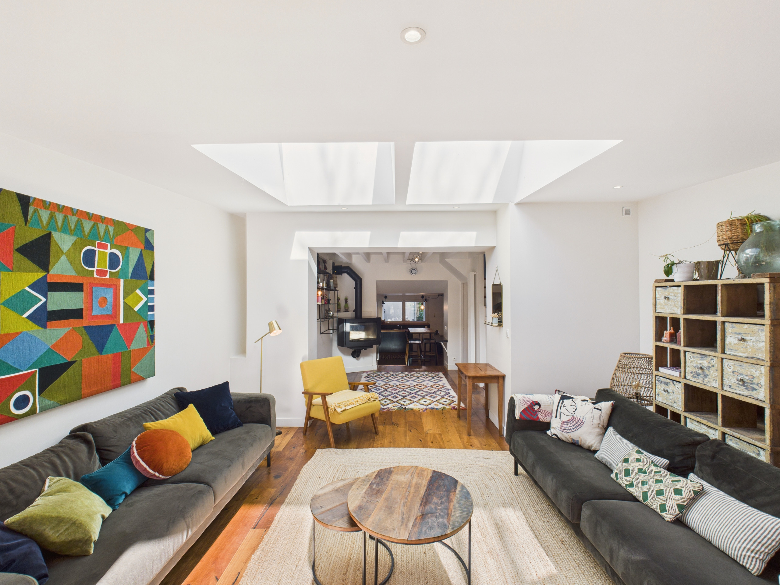 Passez la porte d’entrée et découvrez un intérieur moderne, joliment décoré et baigné de lumière. La cuisine indépendante, entièrement équipée (réfrigérateur, four, micro-ondes, lave-vaisselle et plaques à induction), vous offre tout le nécessaire pour préparer vos repas. Pour le petit-déjeuner, un grille-pain et une cafetière DeLonghi (café moulu) sont également à votre disposition. Partagez vos repas autour de la table de la cuisine ou profitez de celle de l’extérieur aux beaux jours. Le soir, détendez-vous dans le superbe coin salon, doté d’un puits de lumière et de confortables canapés.