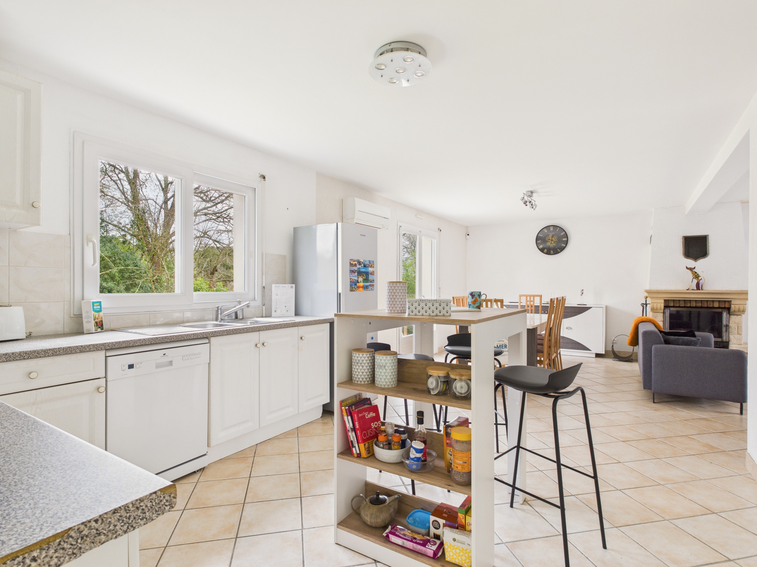 Passez la porte d’entrée et découvrez une grande pièce de vie climatisée, avec un accès direct aux deux terrasses. La cuisine ouverte, entièrement équipée (réfrigérateur, micro-ondes, four, plaques électriques et lave-vaisselle), vous offre tout le nécessaire pour préparer vos repas. Pour vos petits-déjeuners, une bouilloire, un grille-pain, une cafetière à filtre ainsi qu’une machine Tassimo sont également à disposition. Vous pourrez prendre vos repas autour de la table du salon ou profiter de la terrasse aux beaux jours. Le soir, détendez-vous confortablement au coin du feu, sur les 2 canapés, en profitant de la télévision.