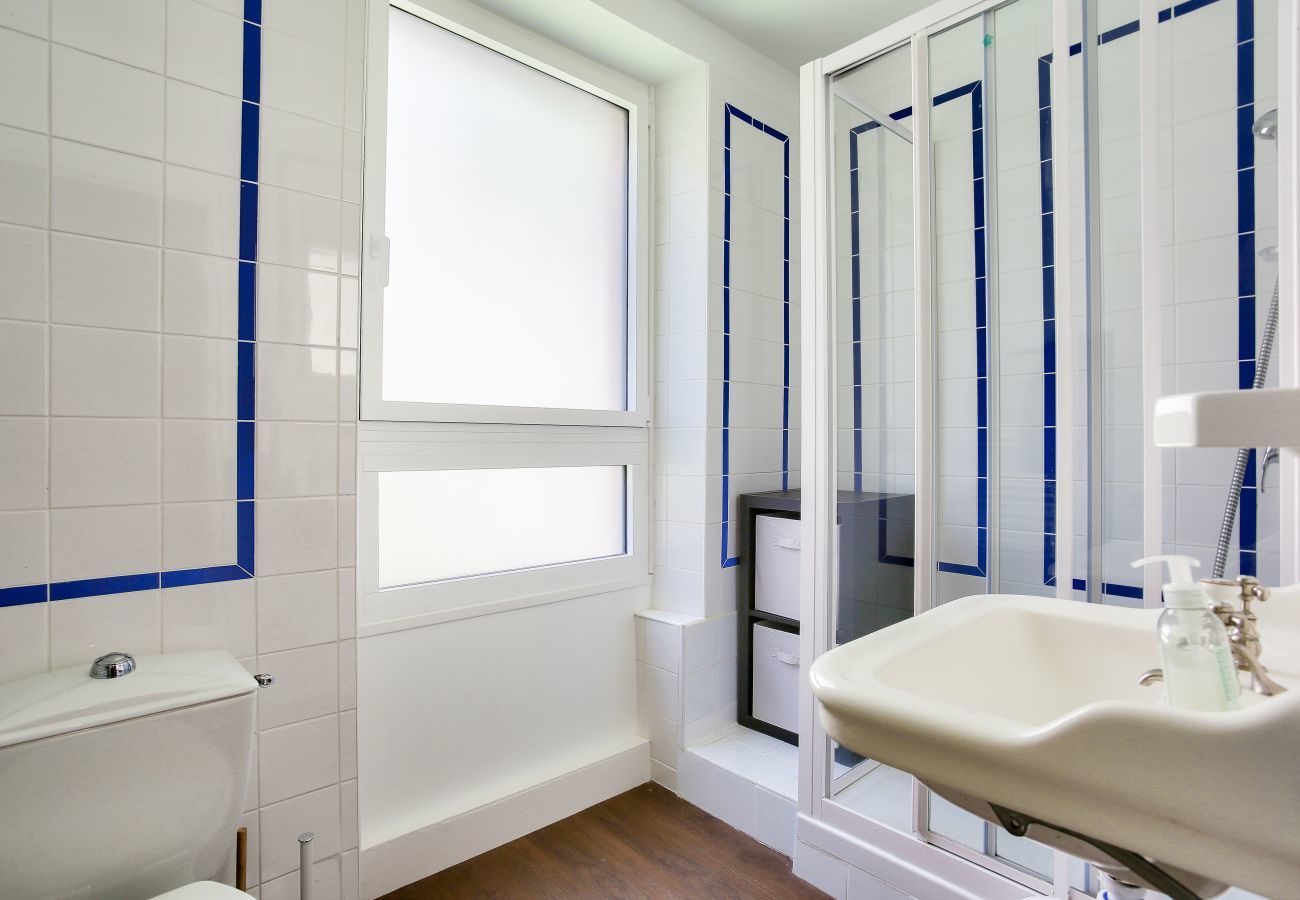 Au premier étage, vous trouverez une première chambre avec un lit double (140x190) et sa salle d’eau attenante avec douche et WC. Sur ce même étage se trouvent également un espace bureau avec un petit canapé, pouvant servir d'espace pour télétravailler tranquillement. Une seconde salle d’eau avec douche et WC complète cet étage pour encore plus de confort.