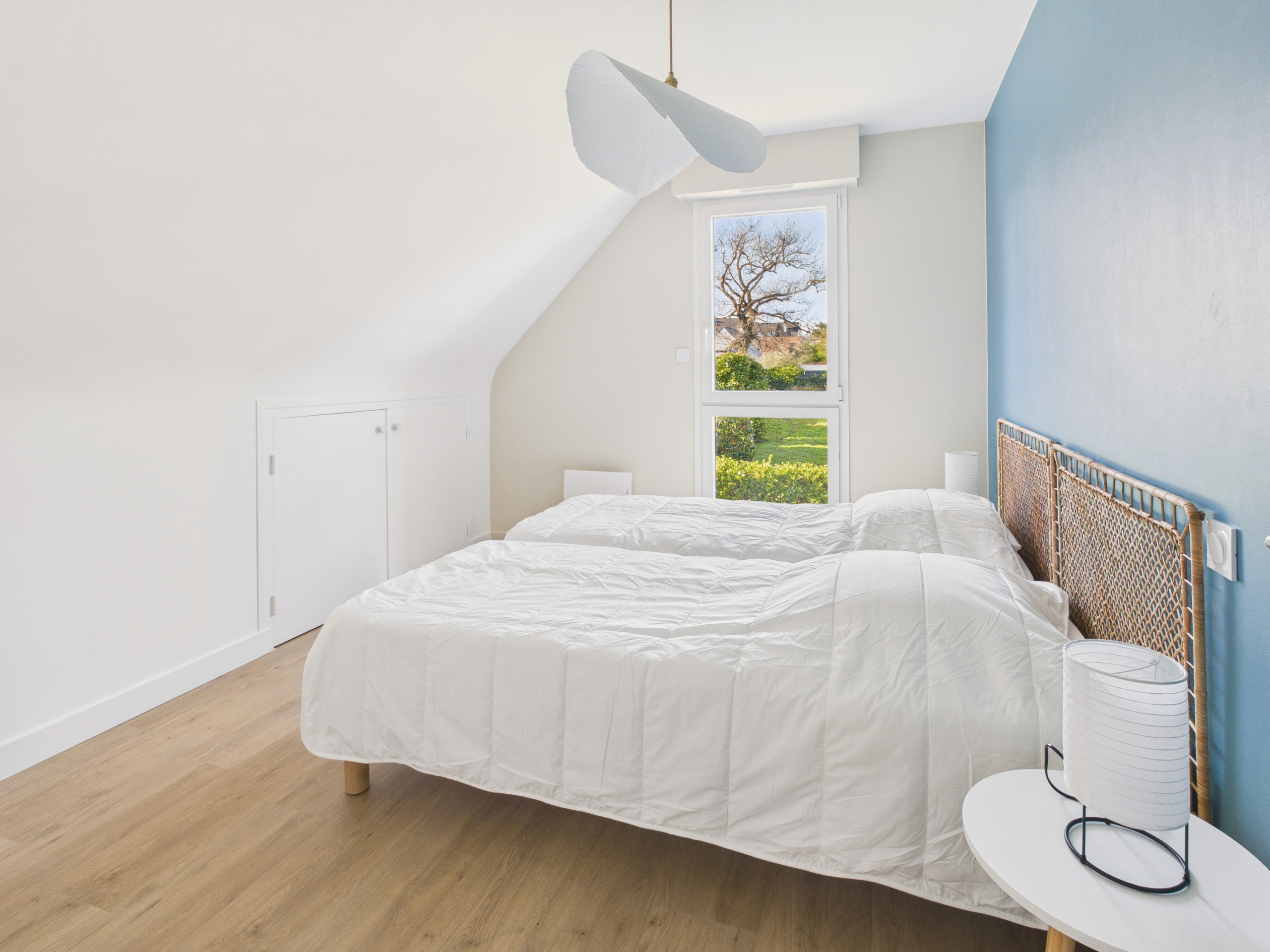 Chambre 4 – à l’étage : deux lits simples (90x200 cm) et un placard.