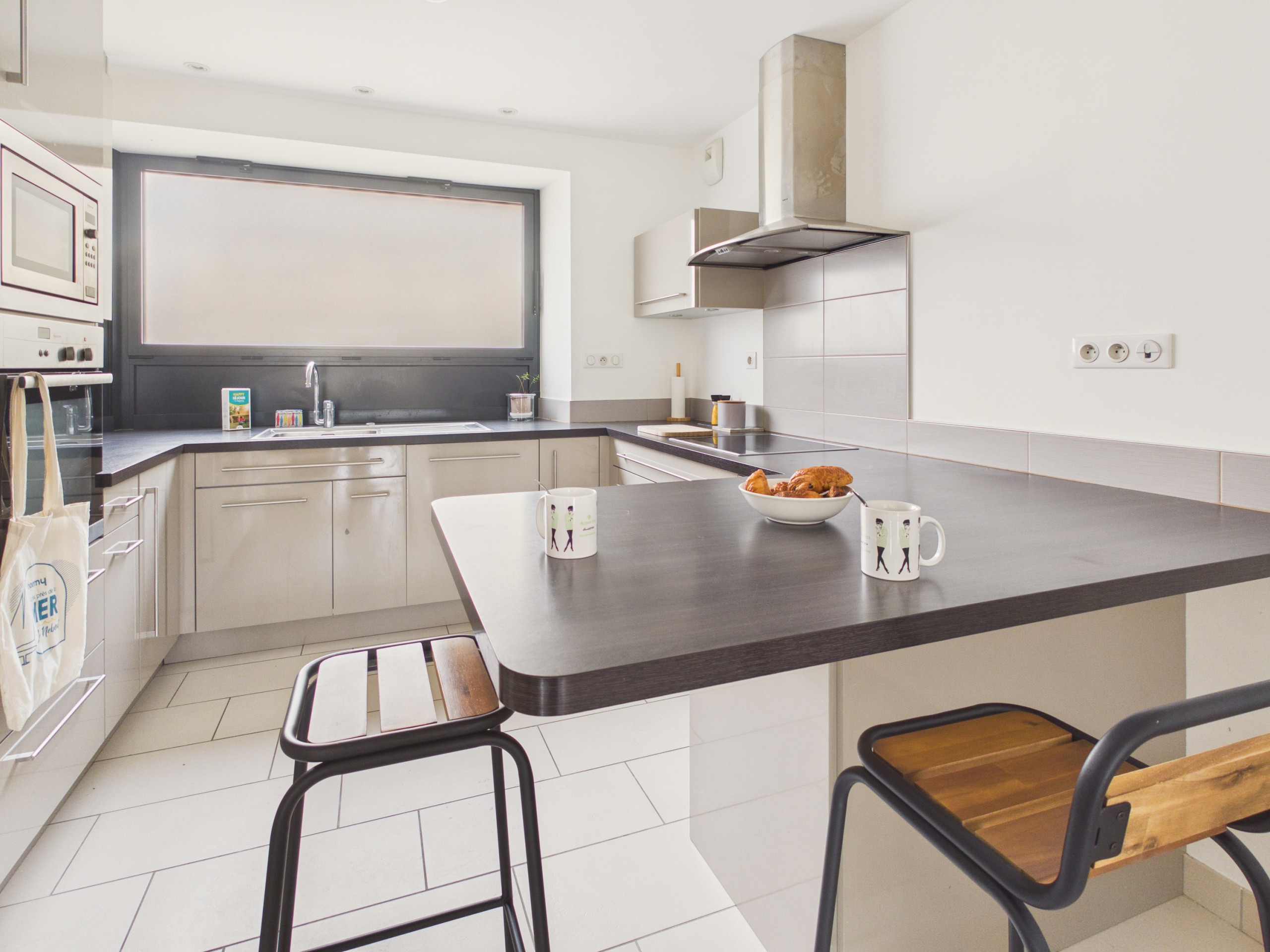 Ouvrez la porte d’entrée et découvrez une agréable pièce de vie de près de 30 m², lumineuse et fonctionnelle, avec un accès direct à la terrasse. La cuisine ouverte, moderne et entièrement équipée (réfrigérateur, congélateur, four, micro-ondes, lave-vaisselle), met à votre disposition tout le nécessaire pour cuisiner comme à la maison. Pour vos petits-déjeuners, une cafetière à filtres, une bouilloire et un grille-pain sont également à votre disposition. Les repas peuvent être partagés autour de la table à manger pour 6 personnes, et le salon vous accueille en fin de journée avec un canapé confortable et une table basse.