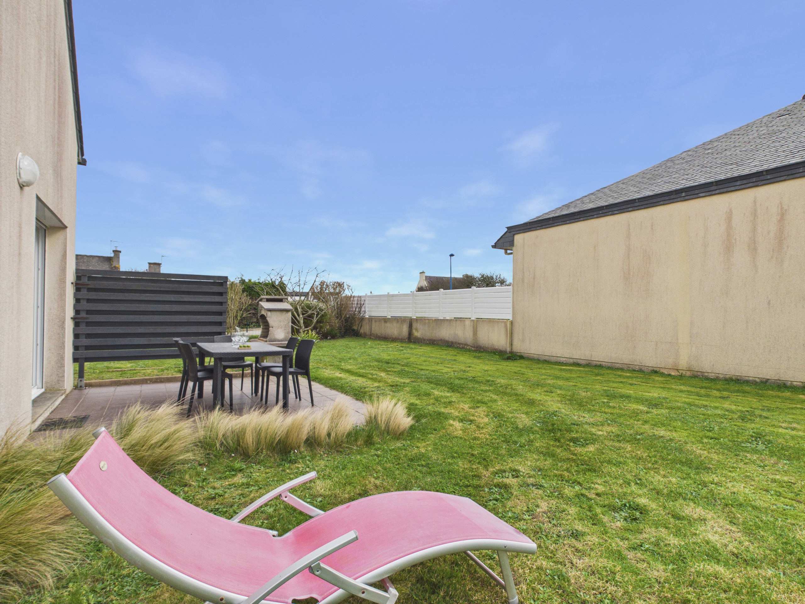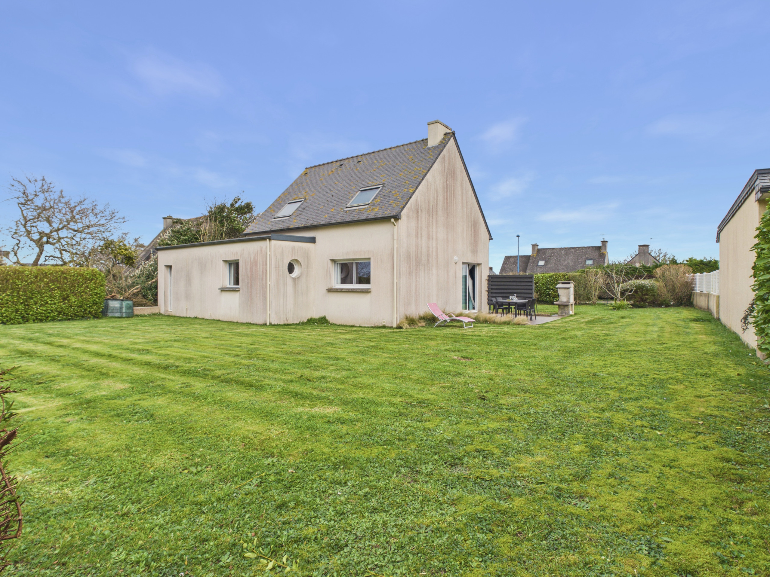À l’extérieur, vous profiterez d’un jardin clos agréable, idéal pour se détendre en toute sérénité. Une terrasse de 20 m² aménagée avec du mobilier de jardin et un barbecue vous permettra de partager de bons repas en plein air et de profiter pleinement des belles journées bretonnes.