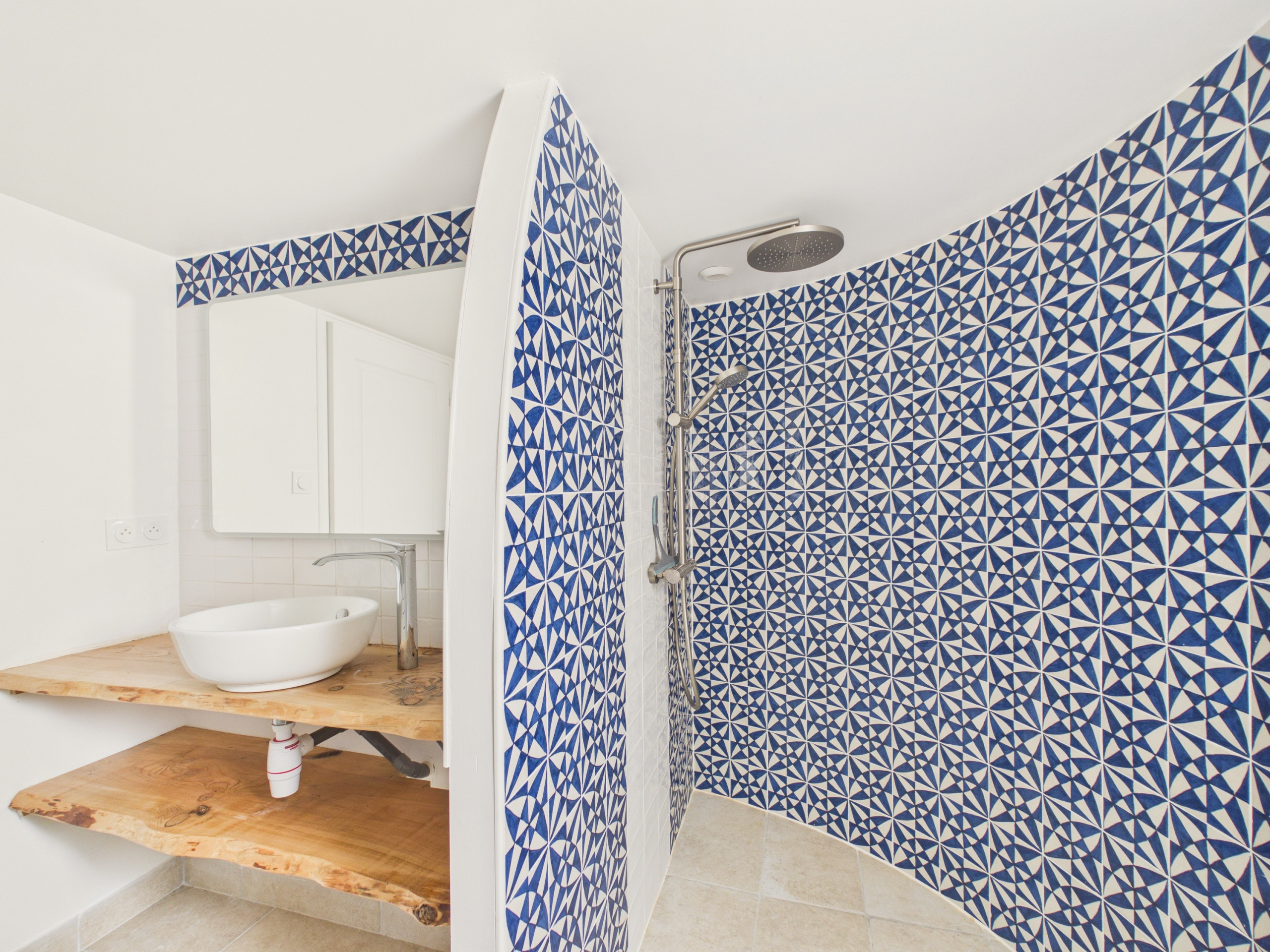 Une salle d’eau disposant d'une douche originale en forme d’escargot et d'un sèche-cheveux, ainsi qu’un WC séparé sont disponibles au rez-de-chaussée.