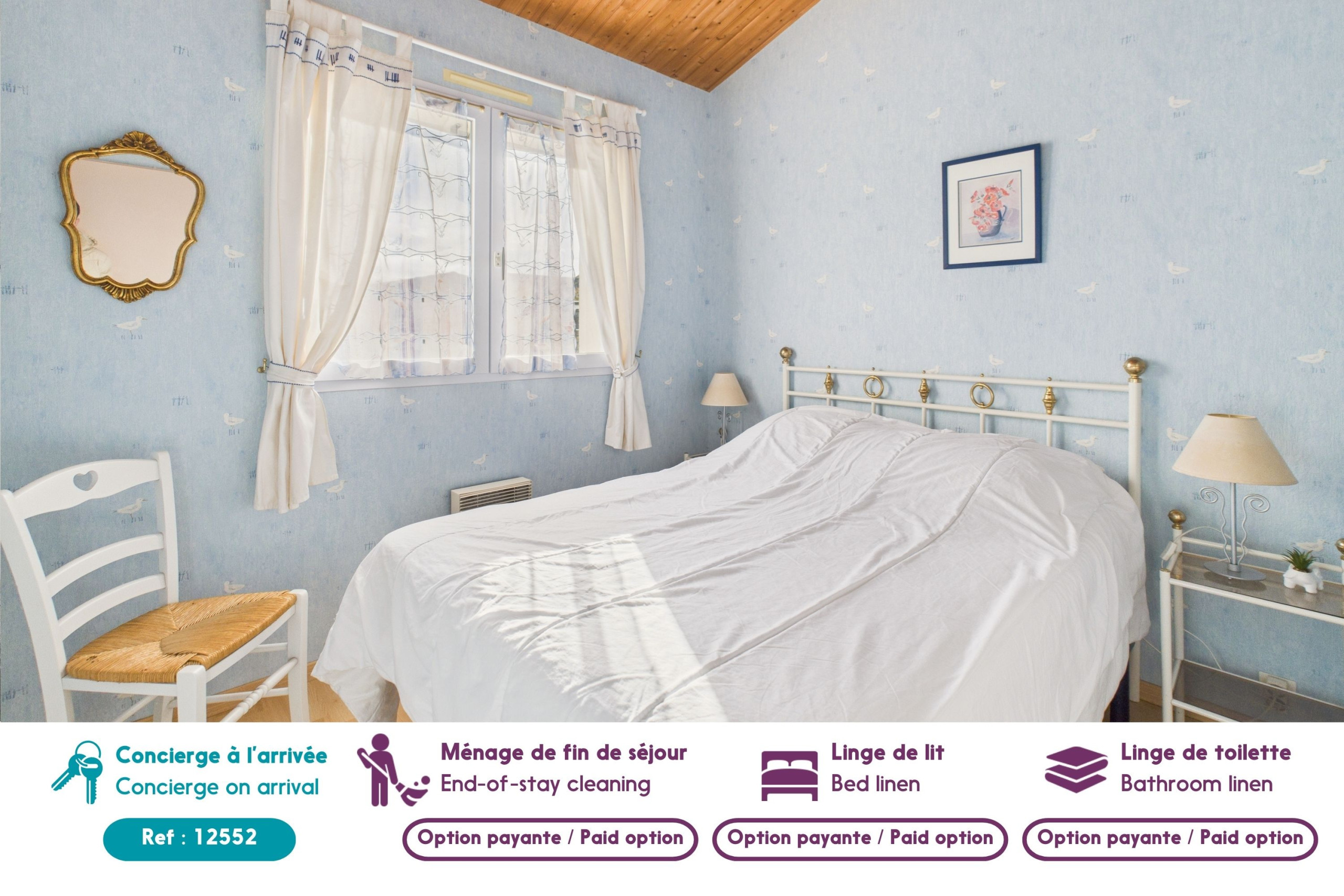 Côté nuit, deux chambres confortables vous attendent, chacune équipée d’un lit double (140x190). La maison dispose également d’une salle de bain avec baignoire, WC et sèche-cheveux, pour un confort optimal durant votre séjour.