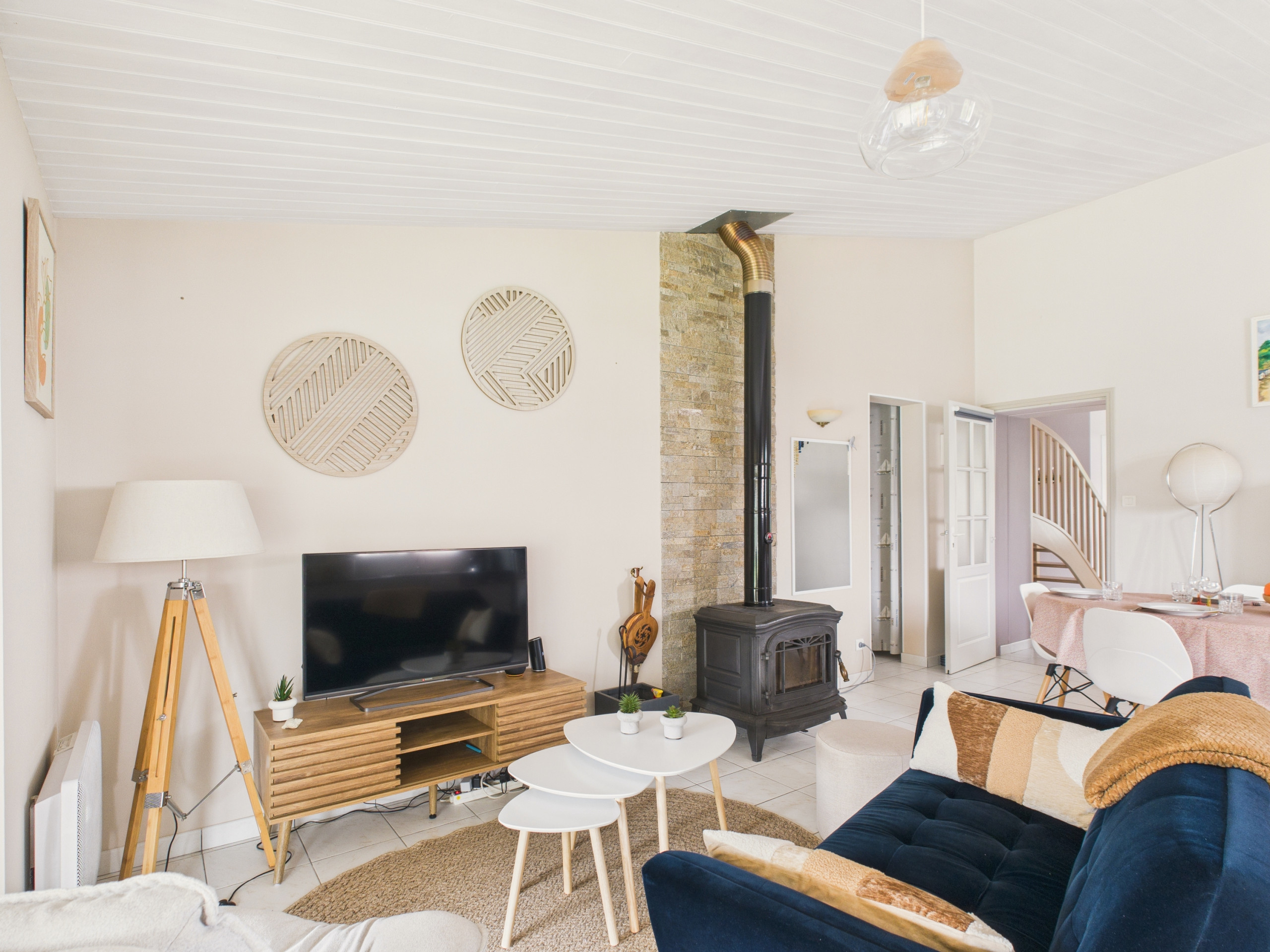 Le salon, est un coin cosy qui vous invite à une pause détente, que ce soit pour une lecture, un film ou un café.
