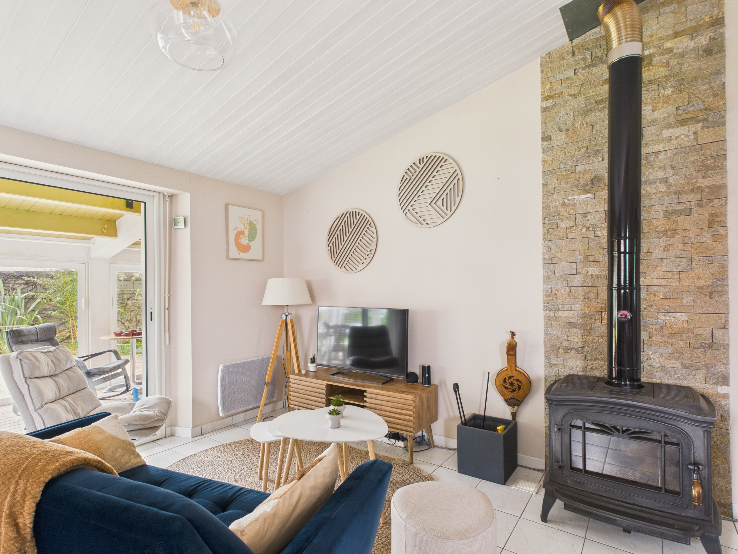 Dès l’entrée, vous serez séduits par une belle pièce de vie lumineuse, composée d’un séjour / salle à manger convivial. Le salon, équipé d’un canapé confortable et d’une télévision, invite à la détente après une journée bien remplie. Un poêle à bois vient compléter l’ensemble pour des soirées chaleureuses hors saison. La baie vitrée offre un accès direct à la terrasse et au jardin, apportant une belle luminosité à l’espace.