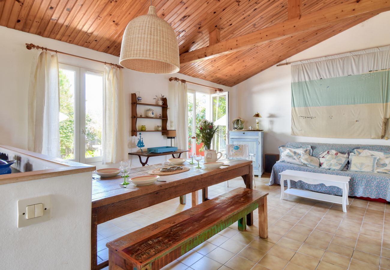 Lors de votre entrée dans la maison, vous découvrirez une belle pièce de vie conviviale et lumineuse, ouverte sur une grande baie vitrée à galandage donnant sur la terrasse en bois. Le salon, aménagé avec soin, vous invite à la détente après une journée en bord de mer, tandis que la cuisine américaine à induction est entièrement équipée pour concocter de bons petits plats : réfrigérateur, congélateur, four, micro-ondes, lave-vaisselle, cafetière Nespresso, grille-pain et bouilloire. Tout est pensé pour que vous vous sentiez comme chez vous.