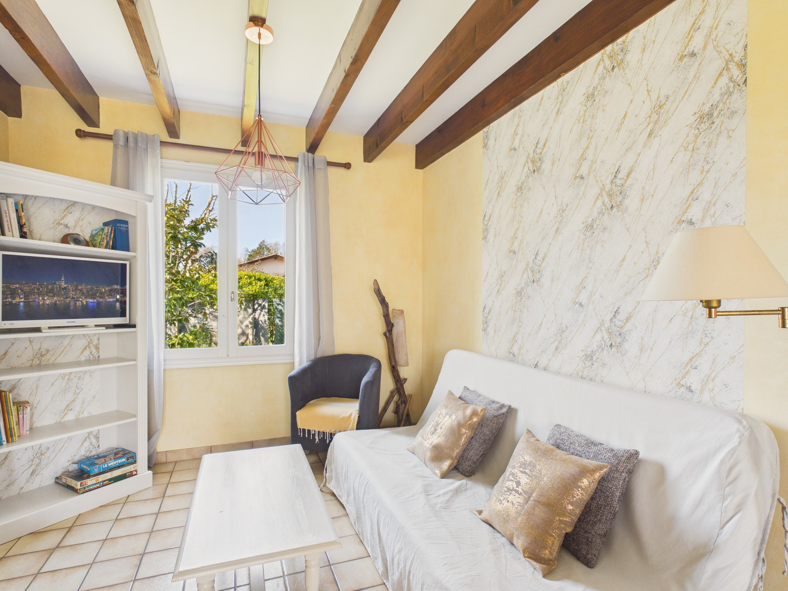 La maison est dotée d'une véranda, permettant de profiter à tout moment de la vue sur le jardin. À l'intérieur, un espace salon-salle à manger vous invite à vous réunir pour partager de bons repas, des moments de convivialité ou regarder un film devant la télévision.
