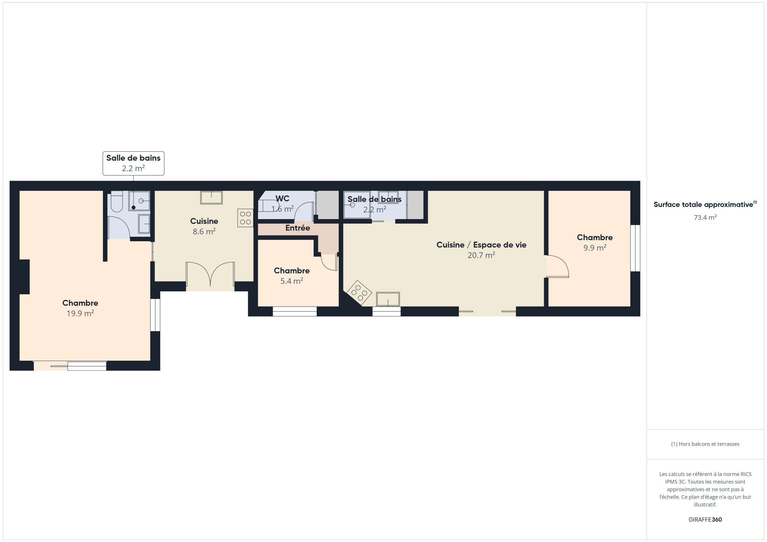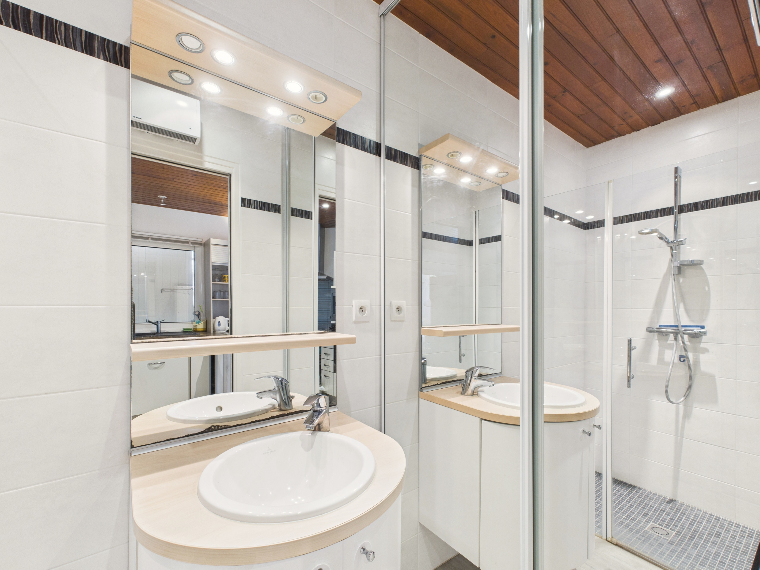 La partie nuit principale se compose d’une chambre accueillante avec un lit Queen Size (160x200). Une seconde chambre, avec un lit simple (80x190), sera parfaite pour un enfant. Pour votre confort, une salle d’eau avec douche et sèche-cheveux se trouve à proximité, ainsi qu’un WC séparé.