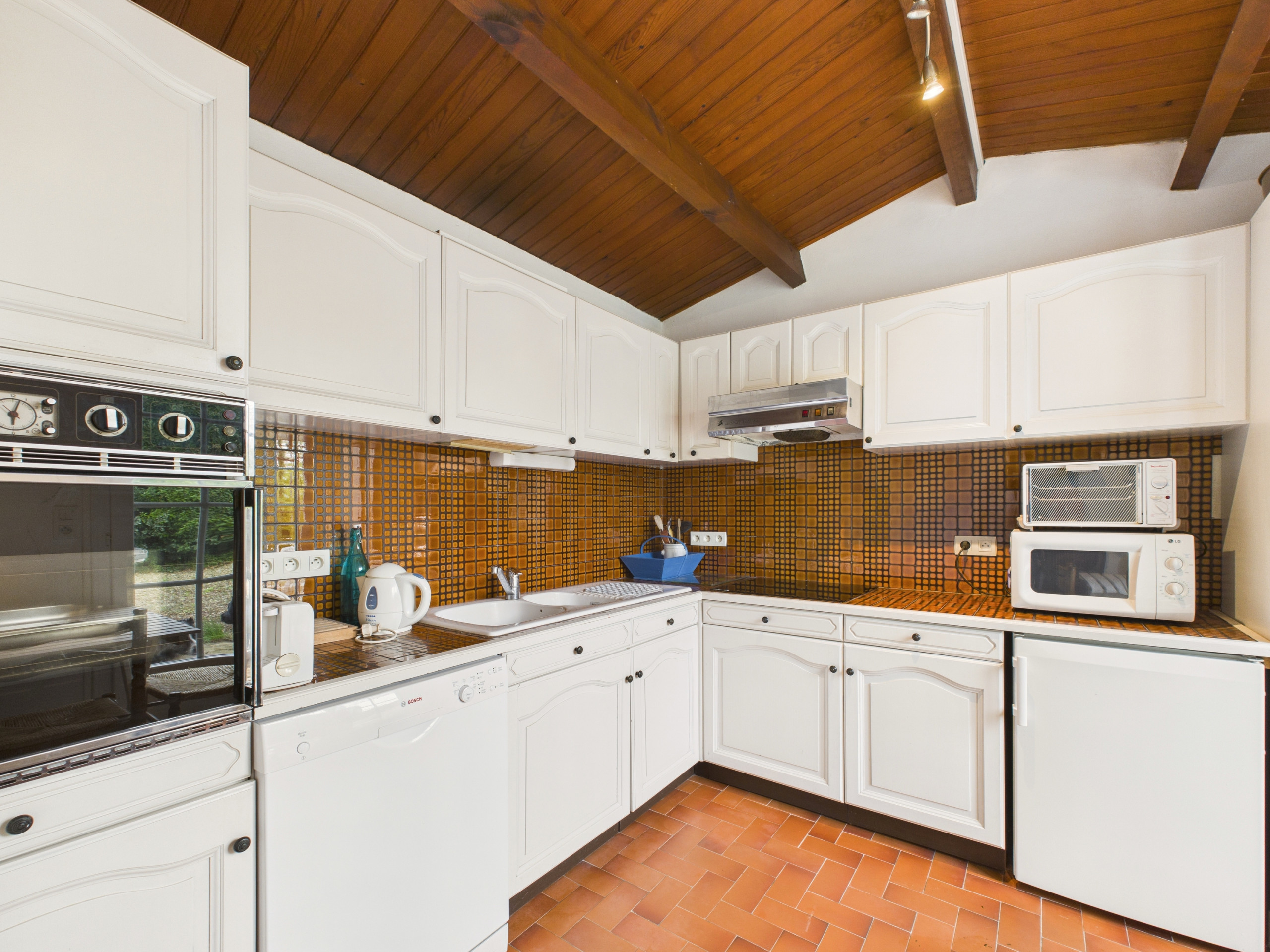 Dès votre arrivée, vous entrez directement dans une agréable pièce de vie doté de deux canapés confortables, de quelques fauteuils, d’une télévision et d’une cheminée idéale pour les soirées plus fraîches d'hiver. À côté, une spacieuse cuisine indépendante, lumineuse grâce à ses grandes baies vitrées ouvrant sur la terrasse, vous permettra de préparer vos repas en toute simplicité. Elle est entièrement équipée : plaques à induction, réfrigérateur, four, congélateur, lave-vaisselle, cafetière filtre et Nespresso, grille-pain, bouilloire.