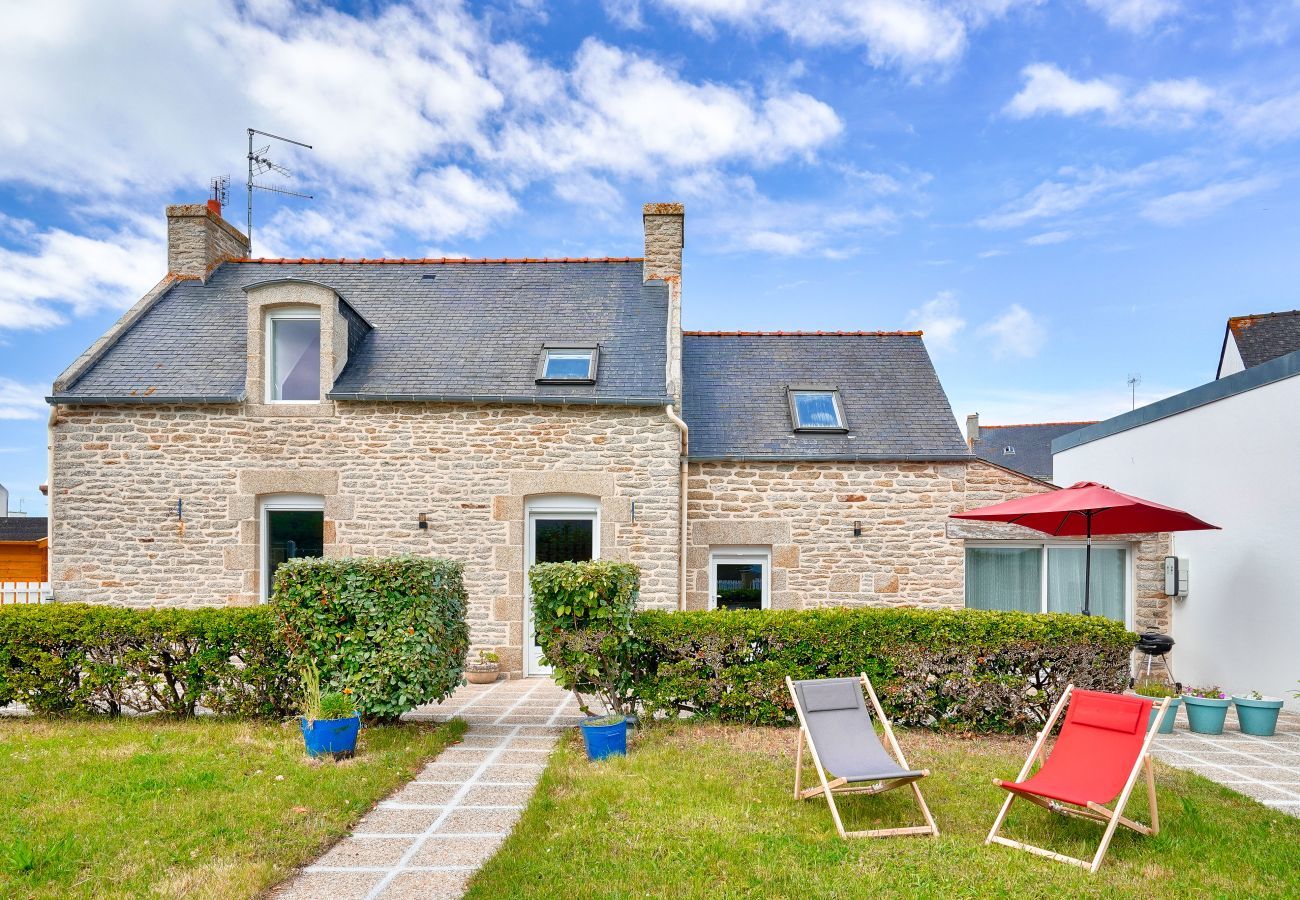 Cette maison typiquement bretonne, classée 3* en meublé de tourisme, alliant pierres anciennes et confort moderne, située dans une rue calme à 300 mètres de la plage de la Grève Blanche, à 800 mètres du centre-ville et du port, vous permettra de profiter pleinement des vacances entre balades, baignades, sessions de pêche à pied ou autour d'une dégustation de fruits de mer, en famille ou entre amis.