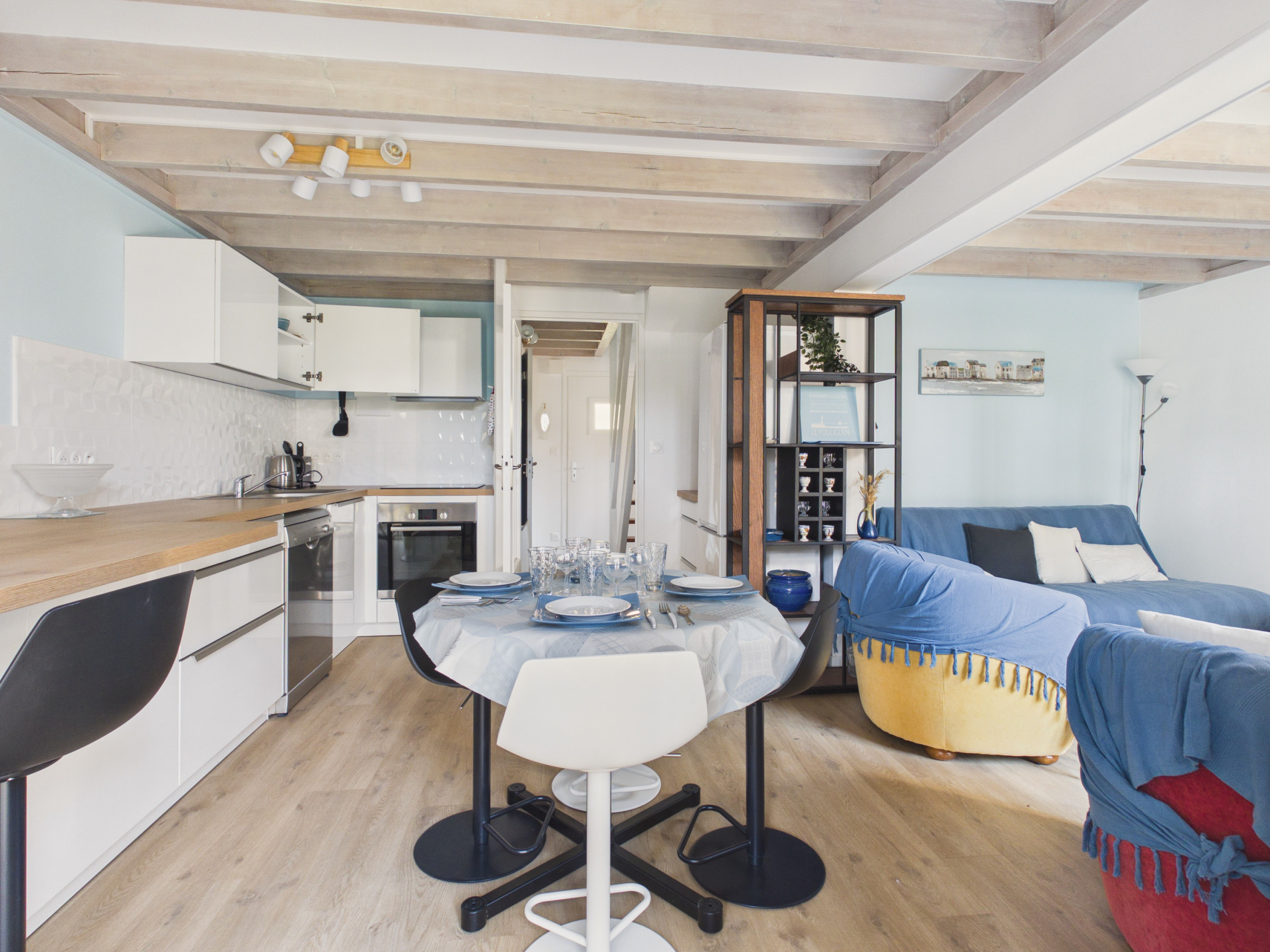 La cuisine, ouverte sur la pièce de vie et entièrement équipée (plaques de cuisson à induction, réfrigérateur, micro-ondes, four, congélateur, lave-vaisselle), vous offre tout le nécessaire pour préparer vos repas. Pour le petit-déjeuner, une bouilloire ainsi qu’une cafetière de type Nespresso sont également à votre disposition.