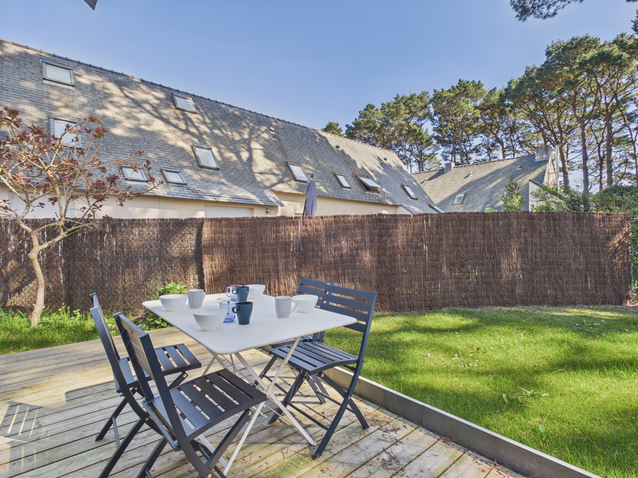 À l’extérieur, un jardin paisible et clos vous attend pour profiter pleinement des beaux jours dans le calme et vous offrant l'opportunité d'observer de nombreux oiseaux et écureuils s'y promenant. Installez-vous autour de la table pour un repas en plein air ou préparez de délicieuses grillades grâce au barbecue mis à disposition. Pendant que les enfants jouent en toute sécurité, vous pourrez vous détendre au calme et savourer l’ambiance paisible des lieux. Un terrain de pétanque à seulement 30 mètres ainsi que deux courts de tennis vous permettrons de partager des moments de loisirs en famille ou entre amis.