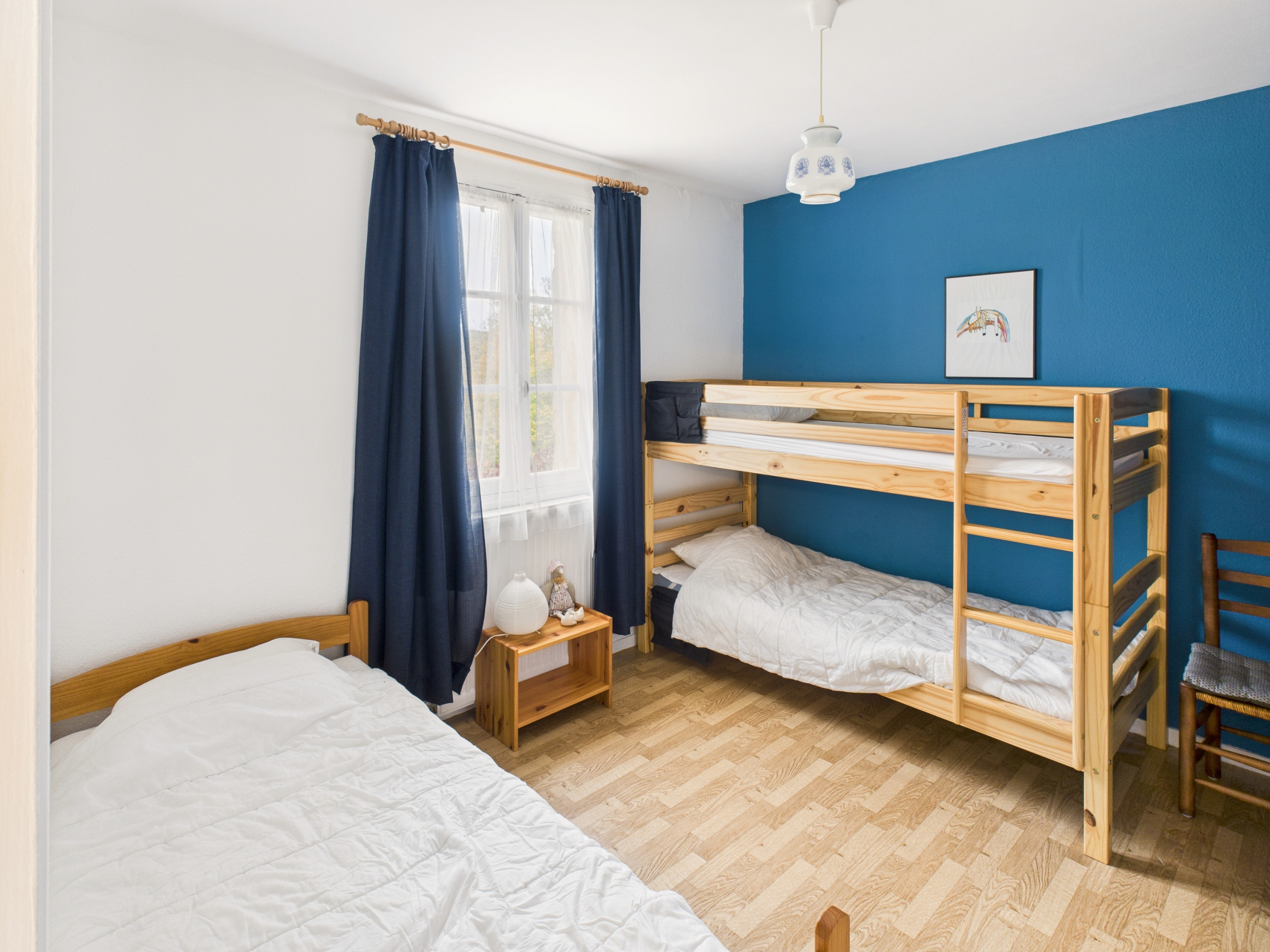 Chambre 2 : un lit simple (90x190cm), un lit superposé (réservé aux enfants) et une penderie.