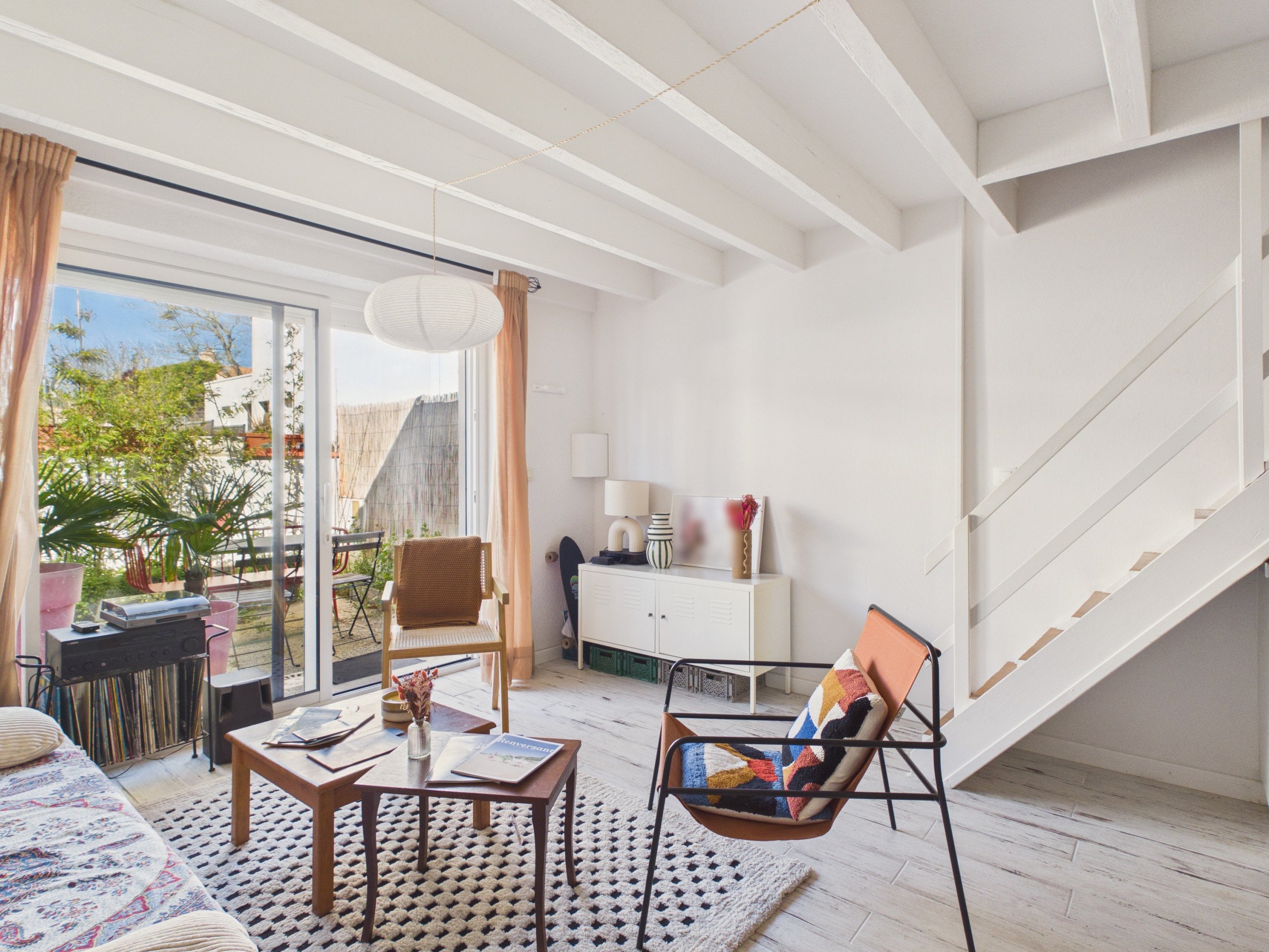 Vous accédez à la maison via une petite cour privée de 12m² avec mobilier de jardin et une plancha électrique à disposition.