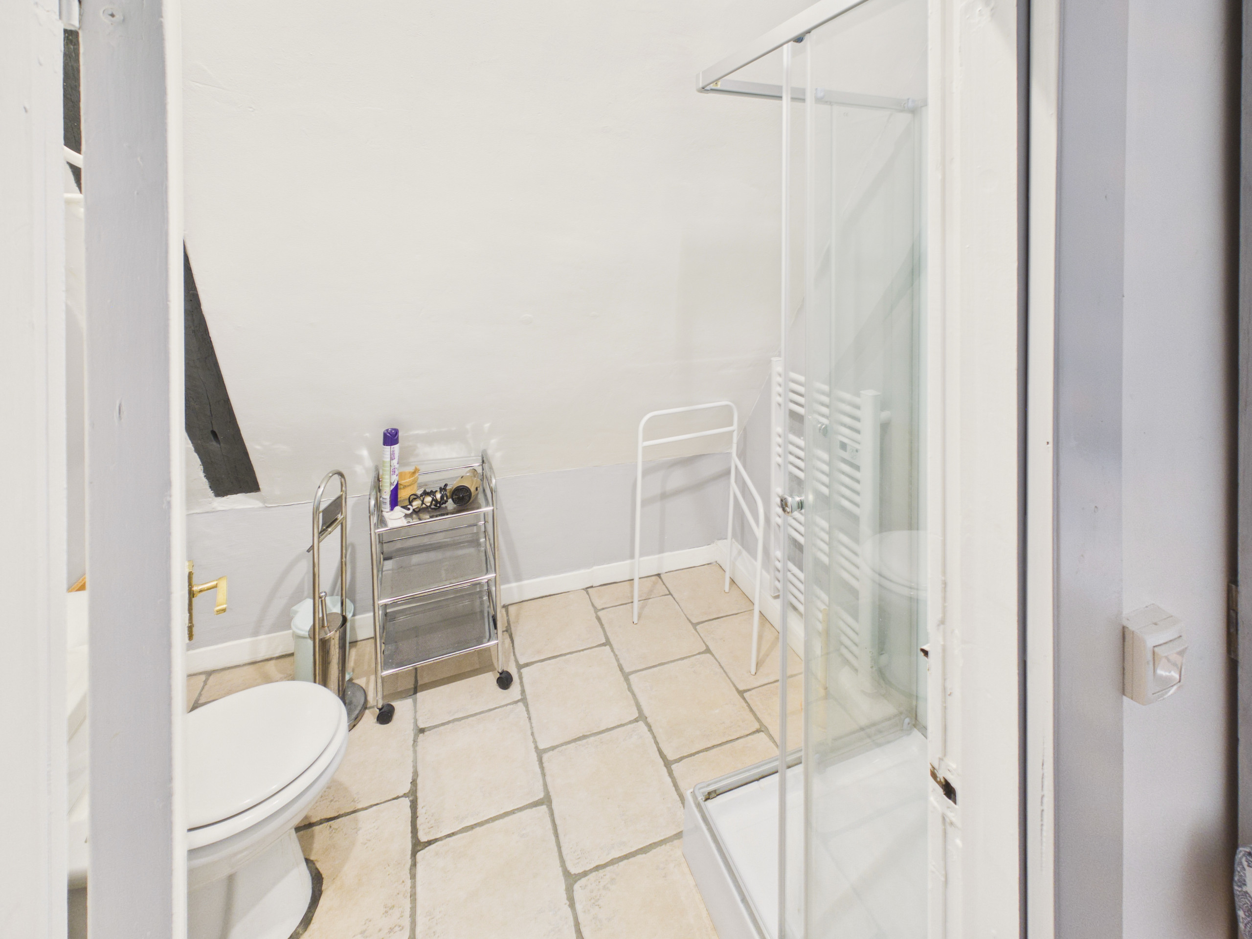 La salle de bain à l’étage dispose d’une douche et d’un WC.