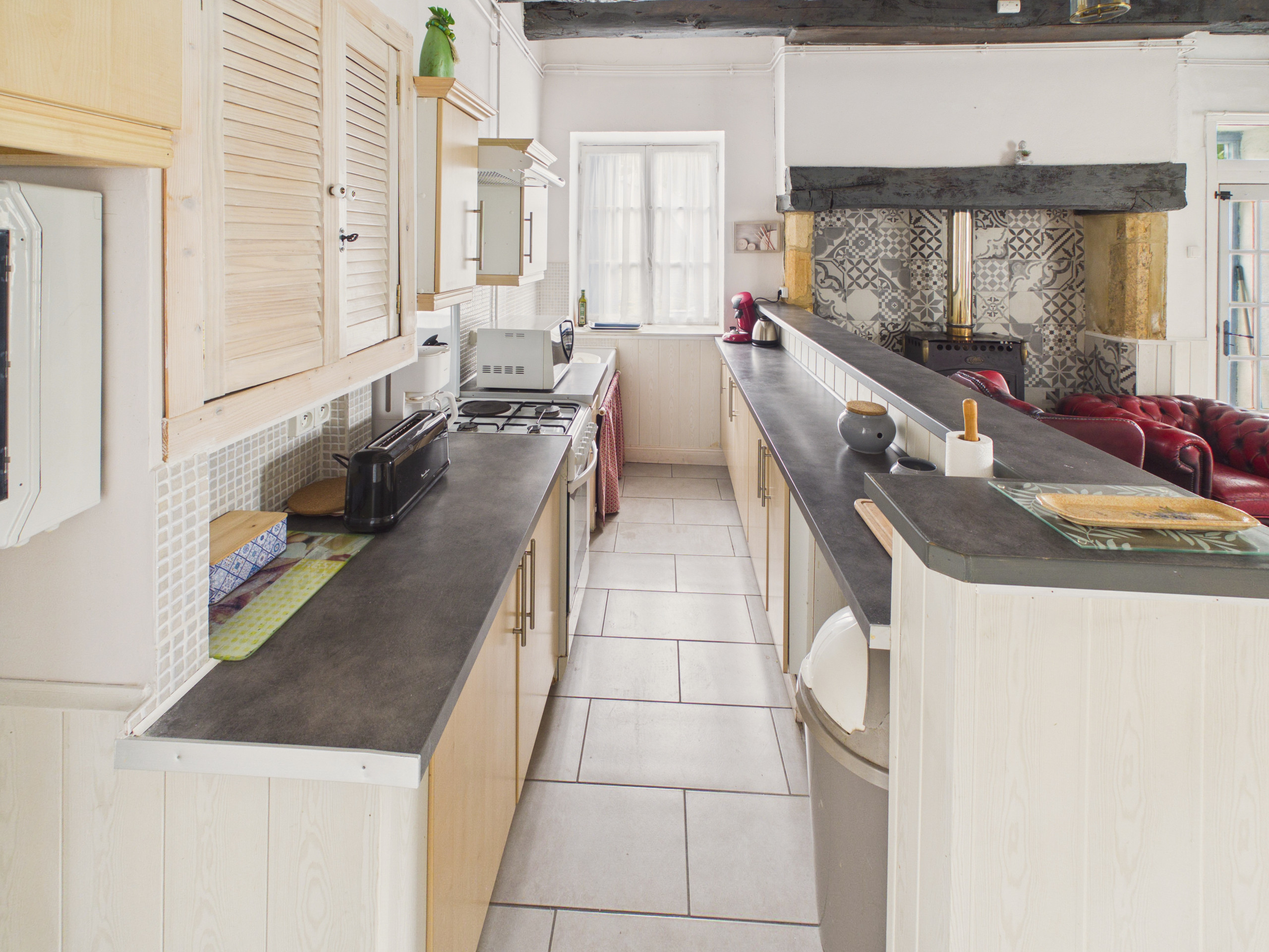 La cuisine, ouverte sur la pièce de vie et équipée (plaques de cuisson à gaz, réfrigérateur, micro-ondes, four, congélateur), met à votre disposition tout le nécessaire pour préparer vos repas. Pour le petit-déjeuner, vous trouverez une bouilloire ainsi que 2 cafetières (à filtre et Senseo).