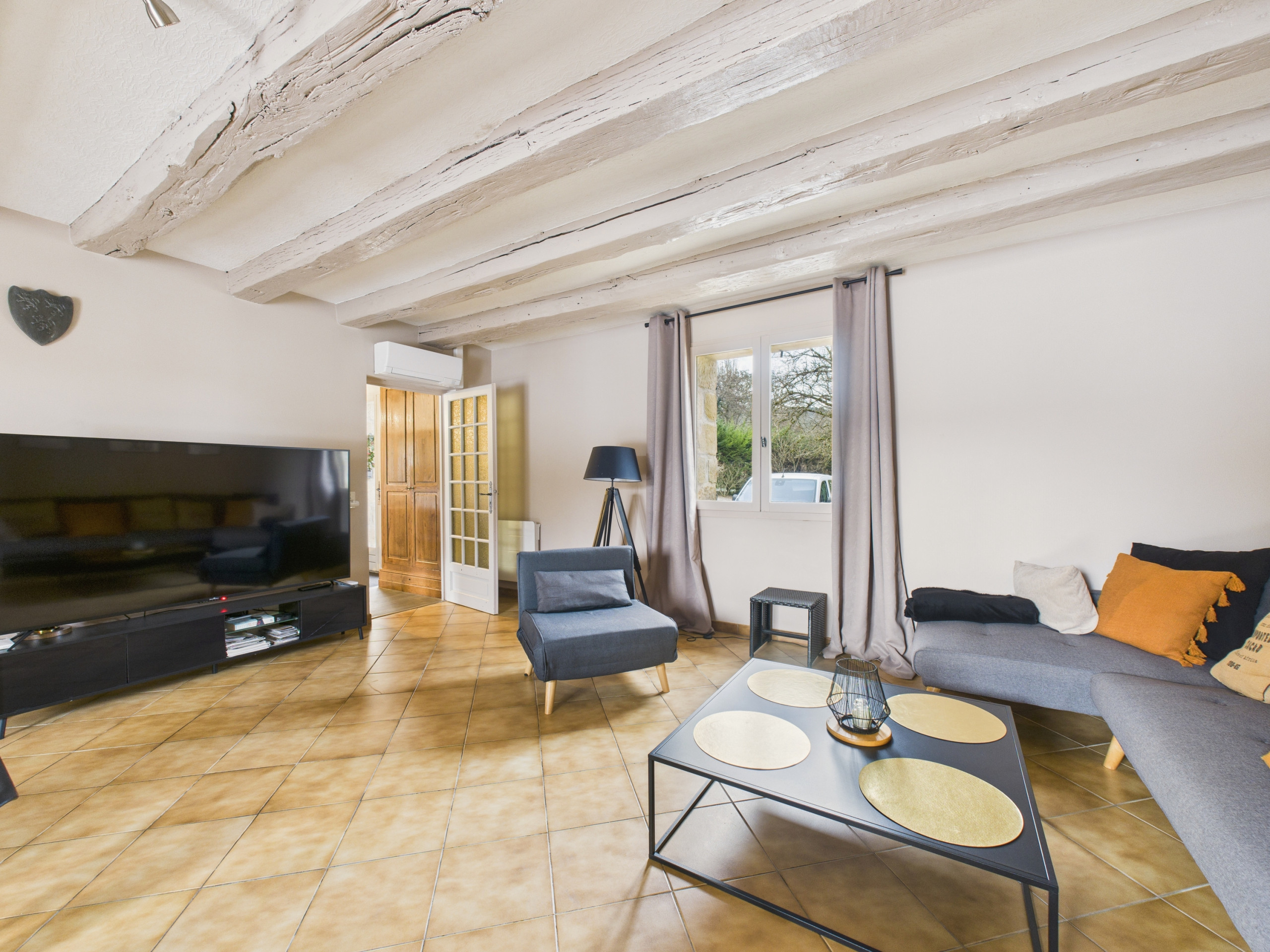 Nichée dans un quartier très calme de Montignac, au cœur du Périgord Noir, cette agréable maison de plain-pied de 145 m² est idéale pour un séjour en famille, à l’écart de l’agitation du centre-ville. Entièrement équipée, elle peut accueillir confortablement jusqu’à 8 voyageurs (4 adultes et 4 enfants). Vous profiterez d’une piscine chauffée, d’un grand jardin et d’une belle terrasse avec plancha, parfaite pour les soirées d’été. Son emplacement privilégié vous permet également de rejoindre facilement les célèbres grottes de Lascaux, situées à seulement 3 km.